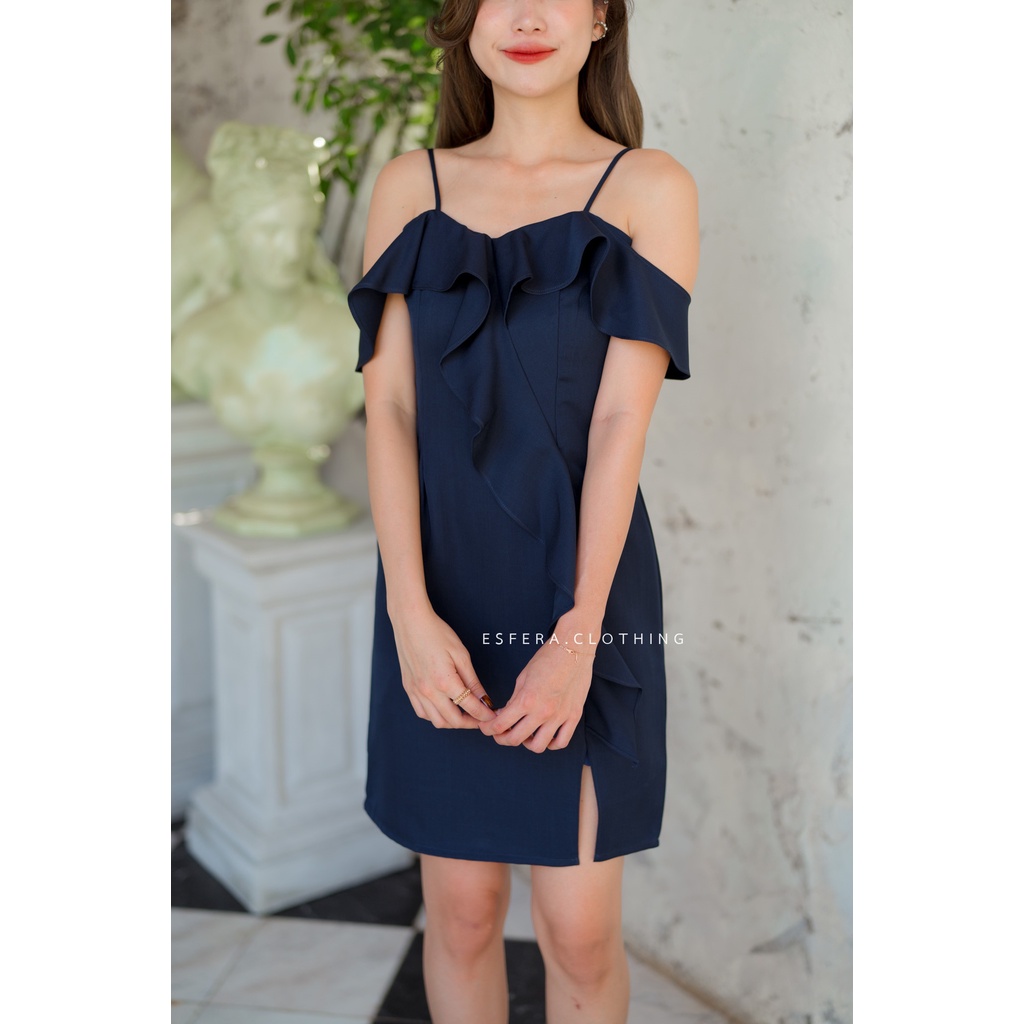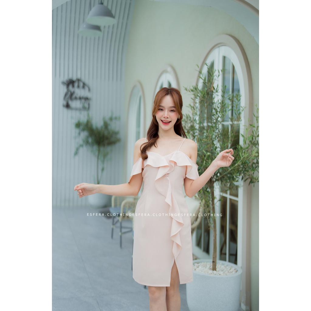 เดรสออกงาน สายเดี่ยวแต่งระบายเฉียงด้านหน้า DR60-2