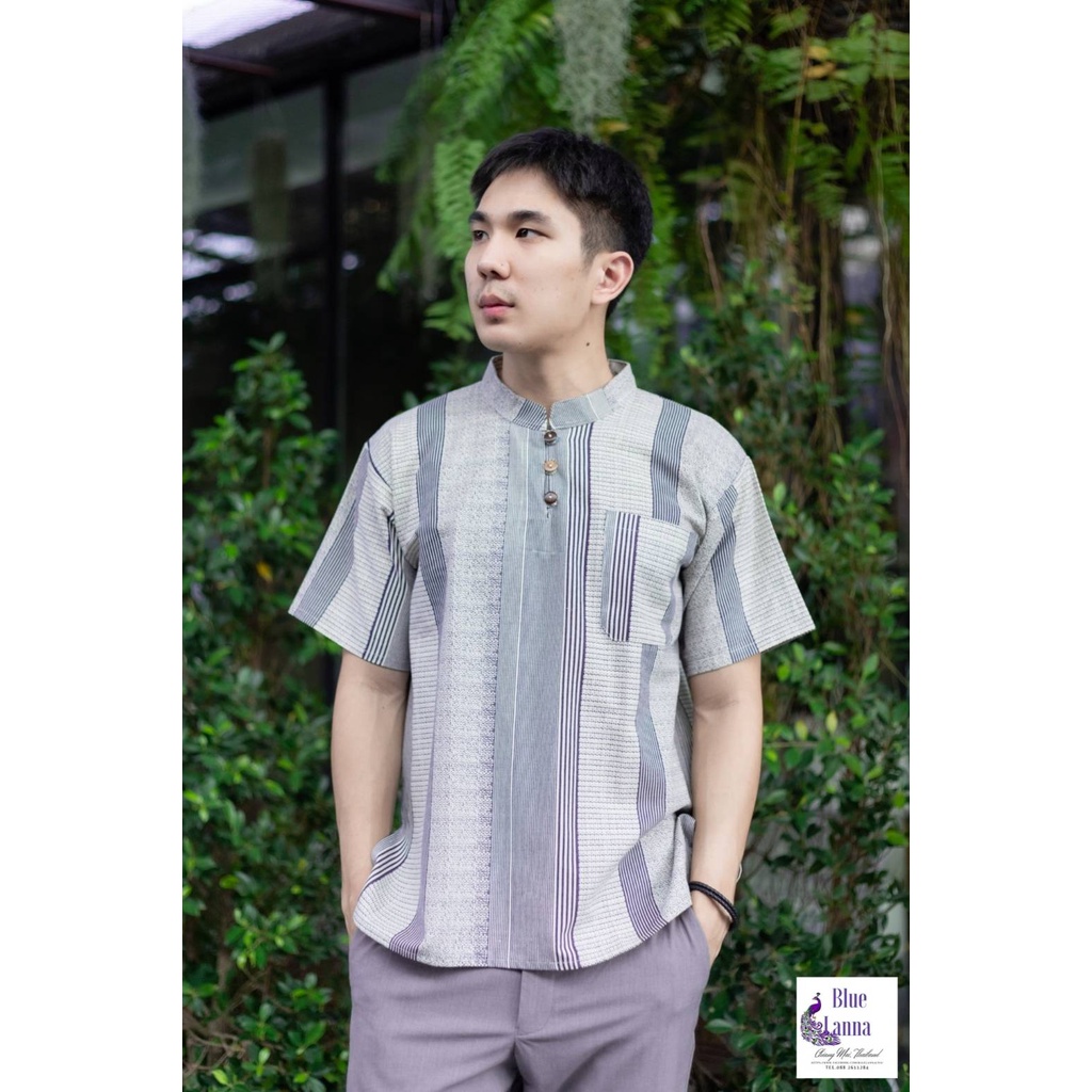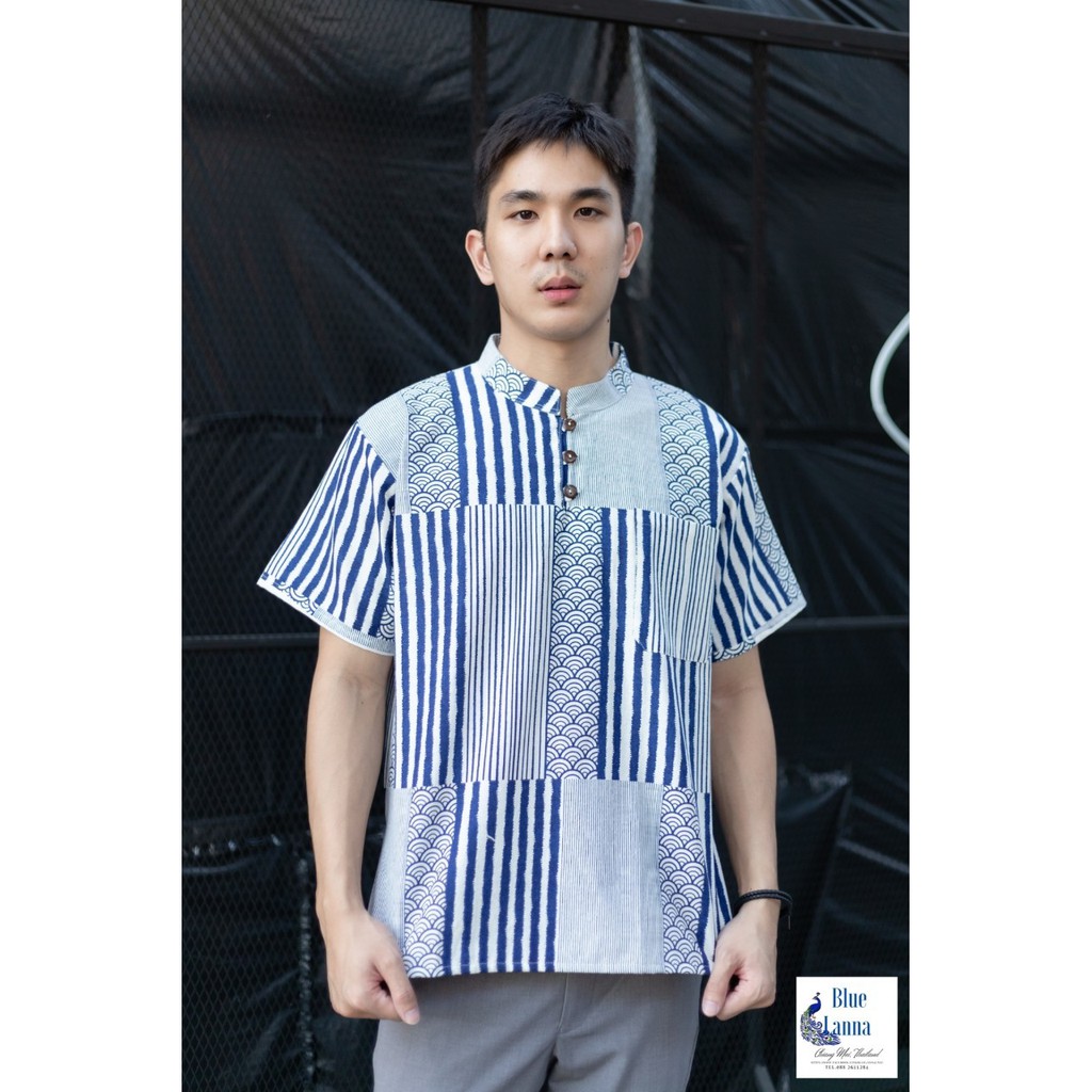 เสื้อคอจีนผู้ชายผ้าฝ้ายสไตล์ล้านนา BlueLanna