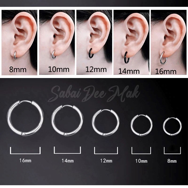 316L ต่างหูห่วง ทรงกลม เครื่องประดับแฟชั่น สำหรับผู้ชายละผู้หญิง - 1 ข้าง | Y-H.H | Hoop Earrings for Men Women - 1 Side