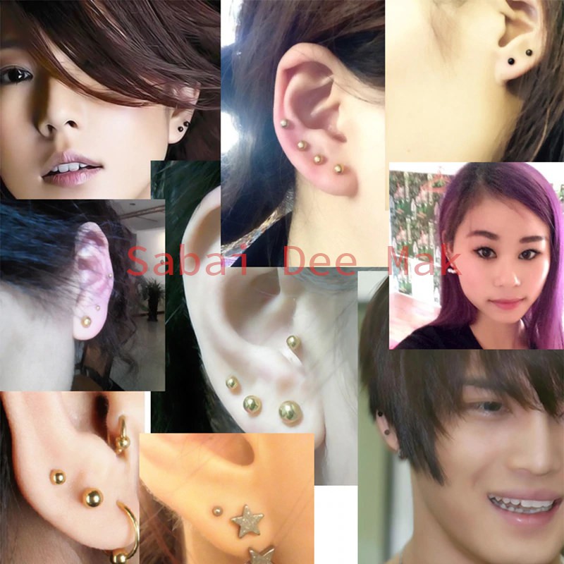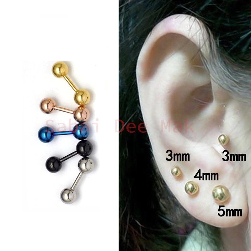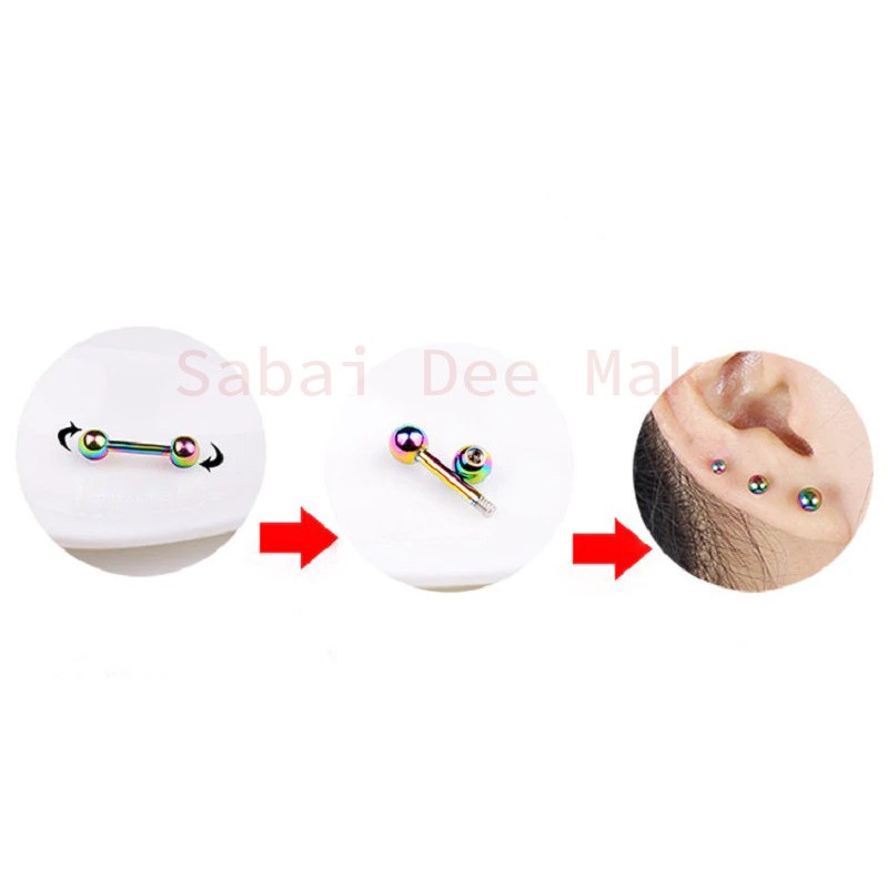 จิวหูดัมเบล สแตนเลสแท้ 316L - 1 ข้าง : Round Dumbbell Studs for Men Women Steel Jewelry - 1 Side