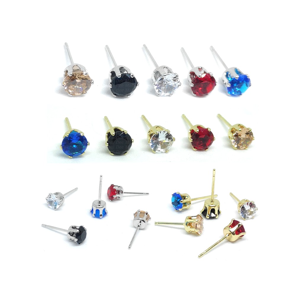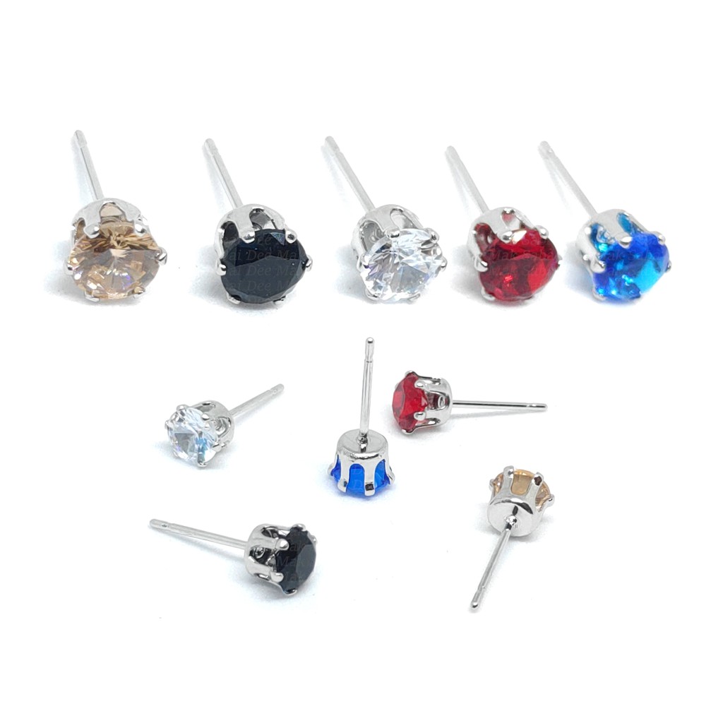จิวสแตนเลส สำหรับเจาะตรงบริเวณกระดูกอ่อนของหู - 1 ข้าง | CZ.CLB | CZ Stud 5 Colours(Clear Back) Stainless Steel Earring