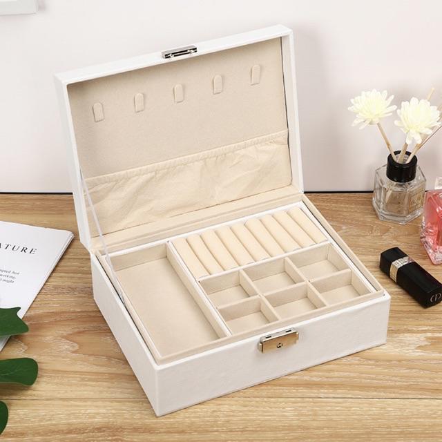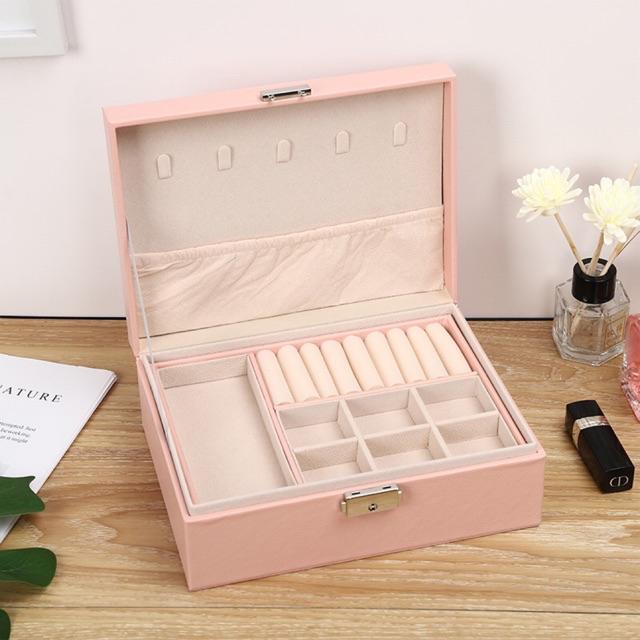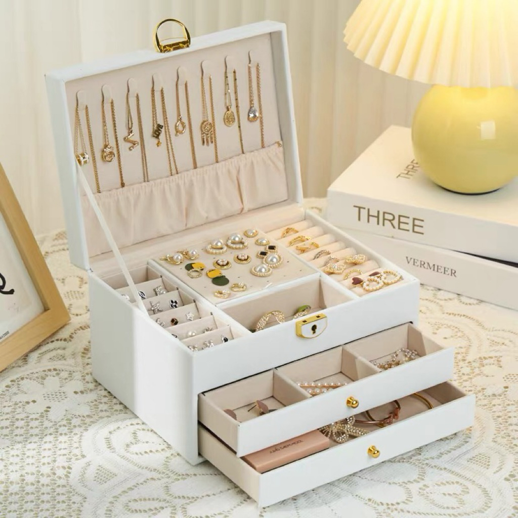 SALE🇹🇭กล่องใส่เครื่องประดับหนัง ถาด2ชั้น มีตัวล็อค กล่องเก็บเครื่องประดับ กล่องPUใส่เครื่องประดับกล่องใส่ต่างหู