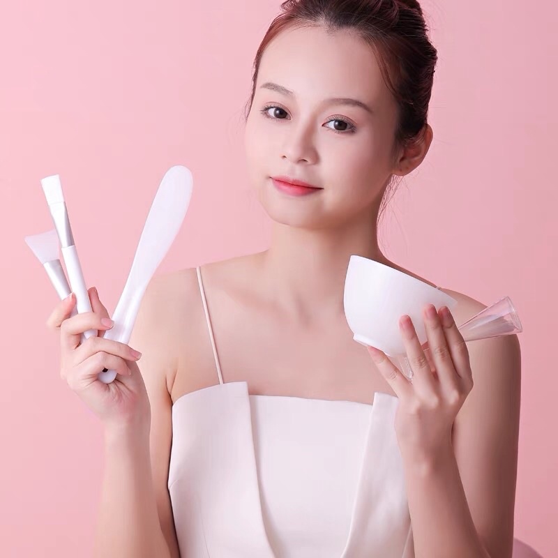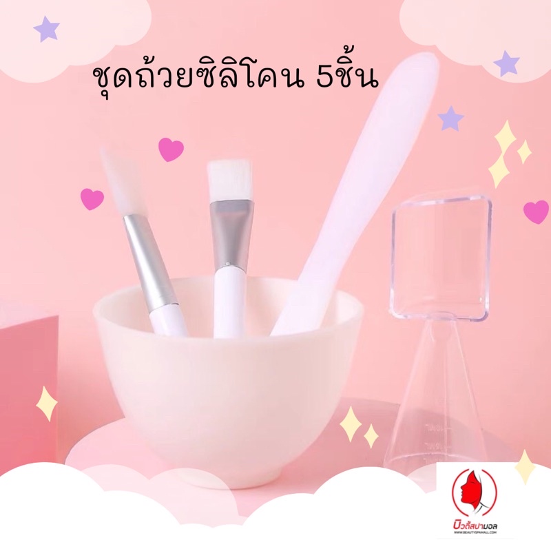 ชุดถ้วยมาส์กซิลิโคน 5ชิ้น อุปกรณ์มาส์ก ถ้วยแบ่งครีม เกรดโรงแรม สีขาว