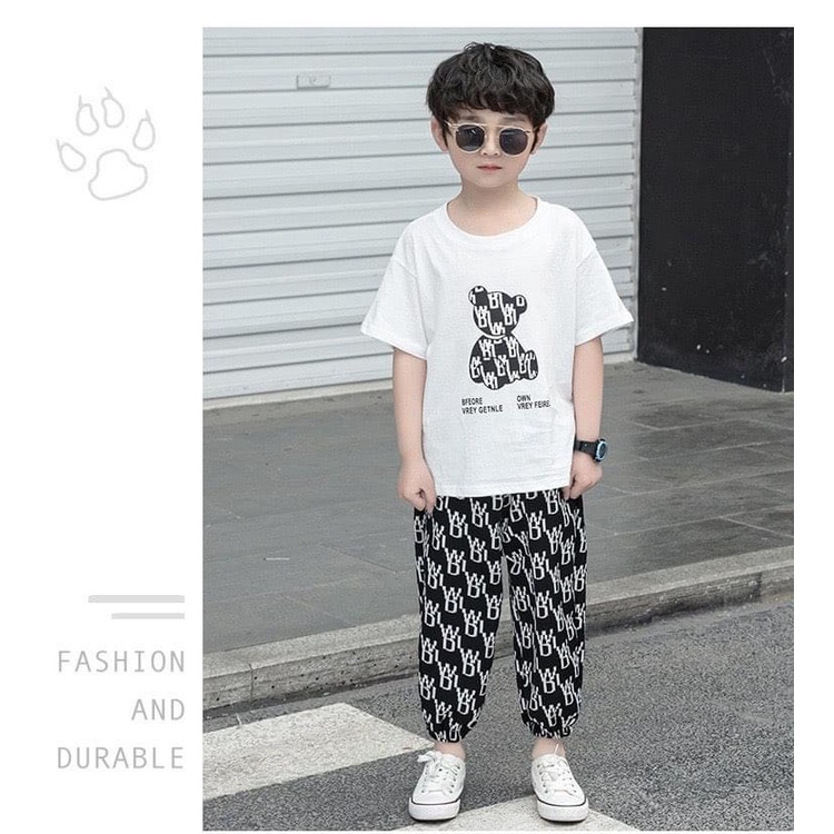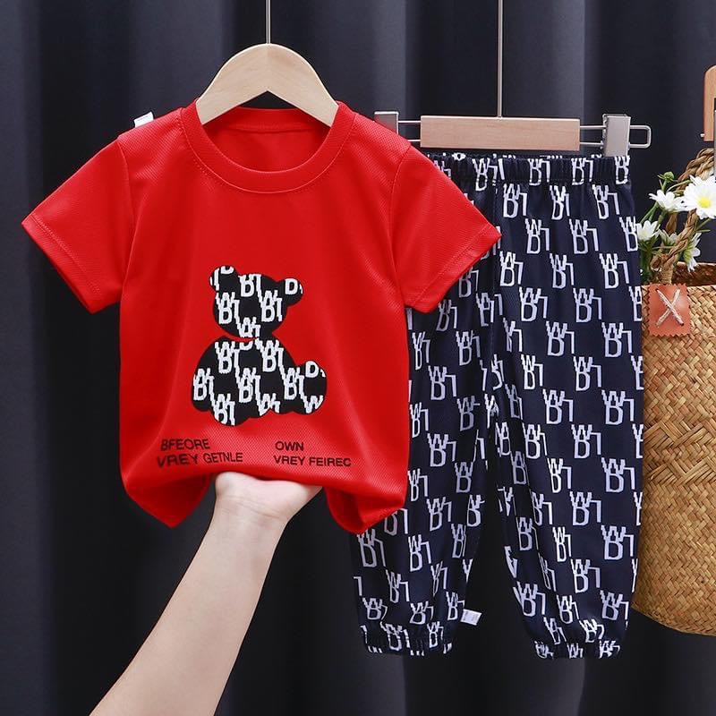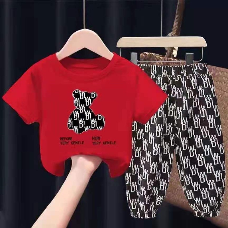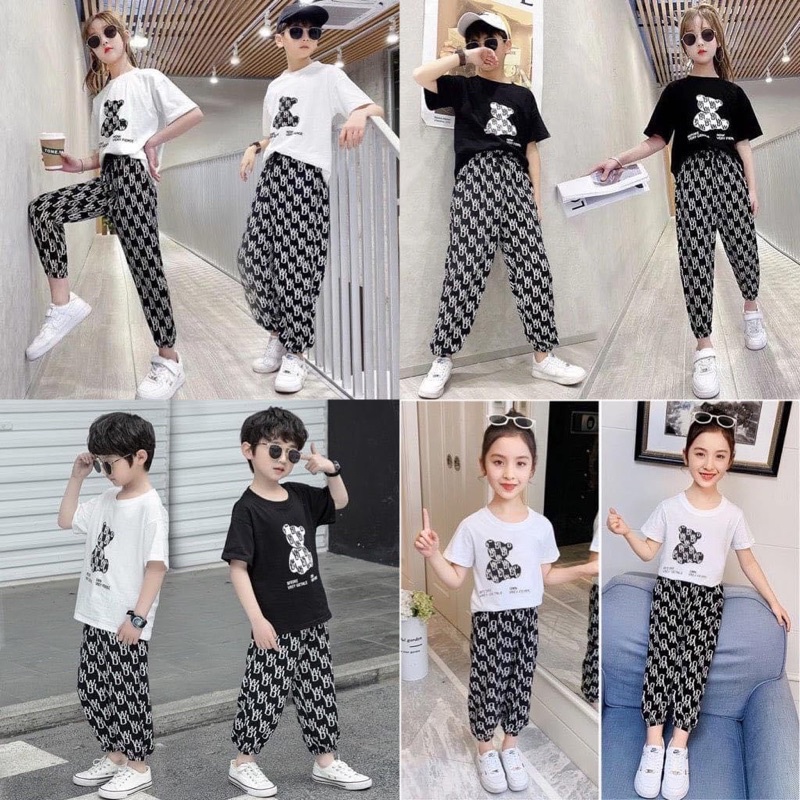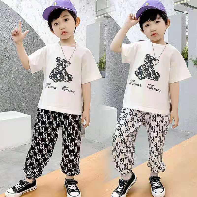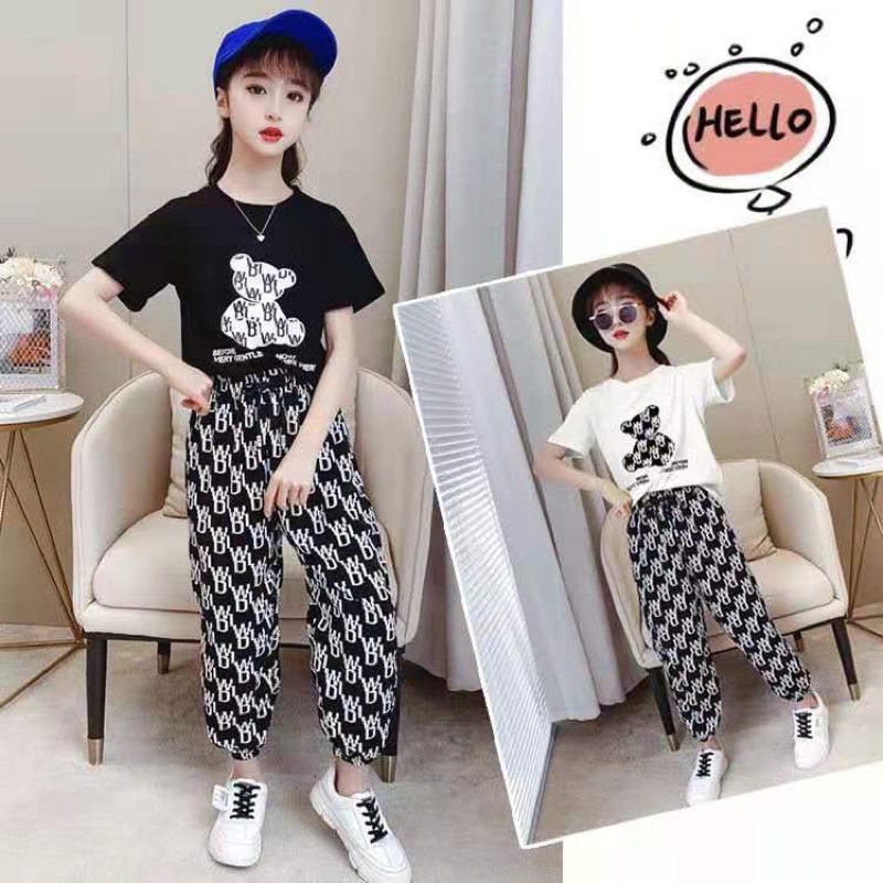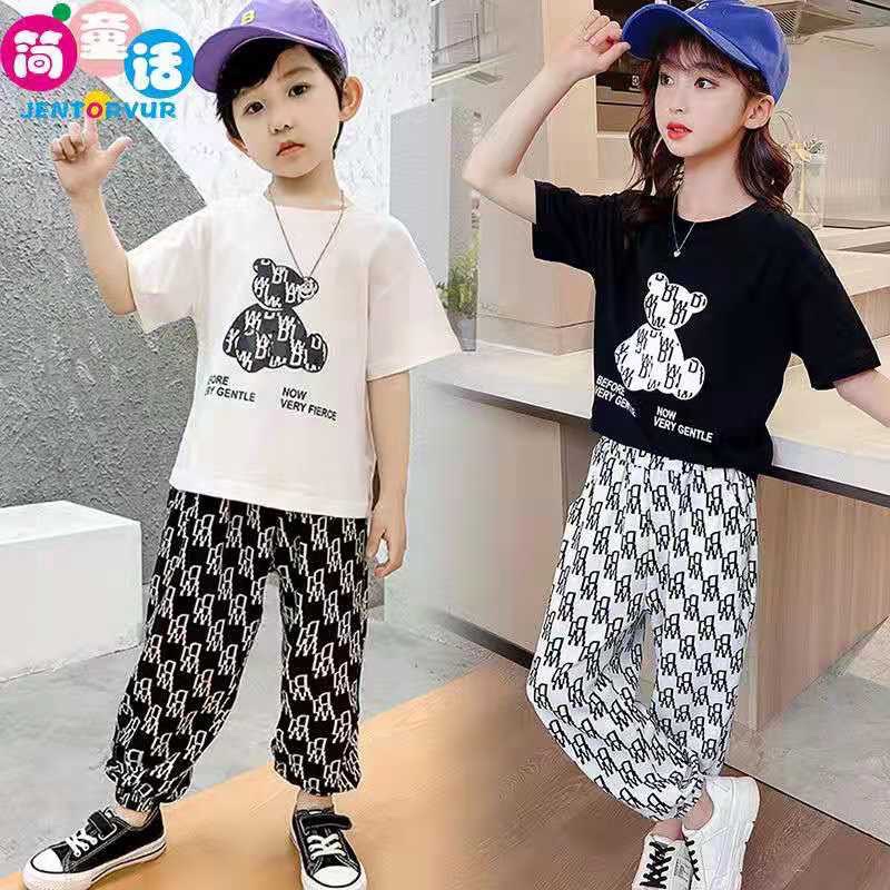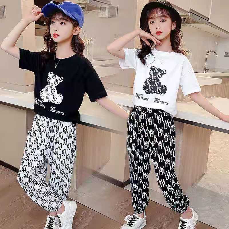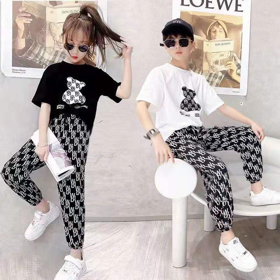 `พร้อมส่ง**ราคาพิเศษสุด**ชุดเด็กแฟชั่นใหม่สไตล์เกาหลี ชุด2ชิ้นกางเกงขายาวกับเสื้อแขนสั้น ผ้านุ่มเย็นใส่สบาย