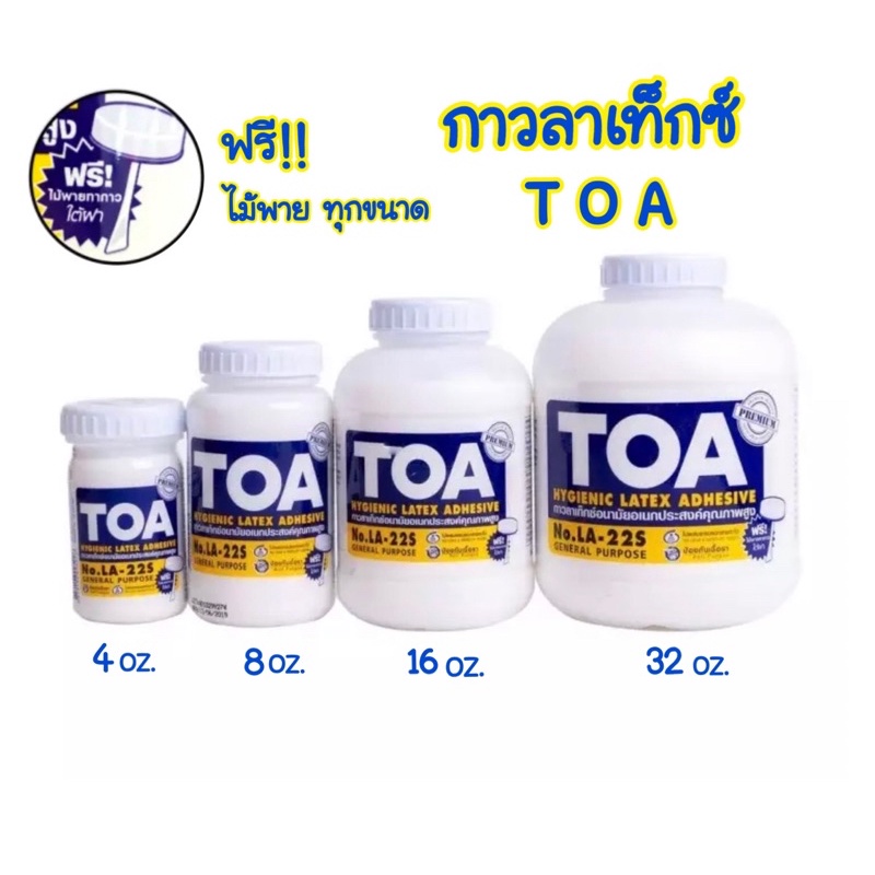 กาวลาเท็กซ์ TOA ใช้กับงานไม้ได้ (รุ่นนี้มีไม้พาย ทากาว อยู่ใต้ฝาทุกขนาด)