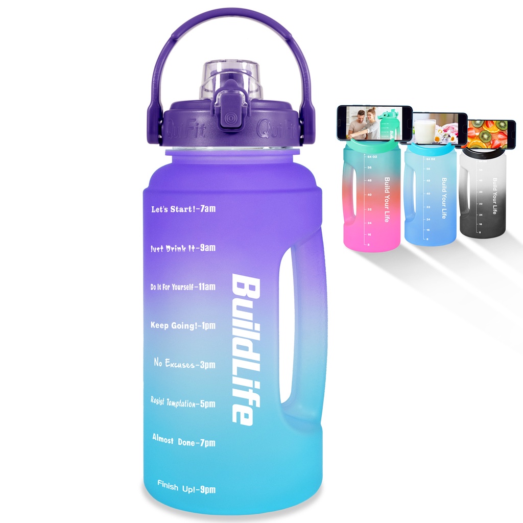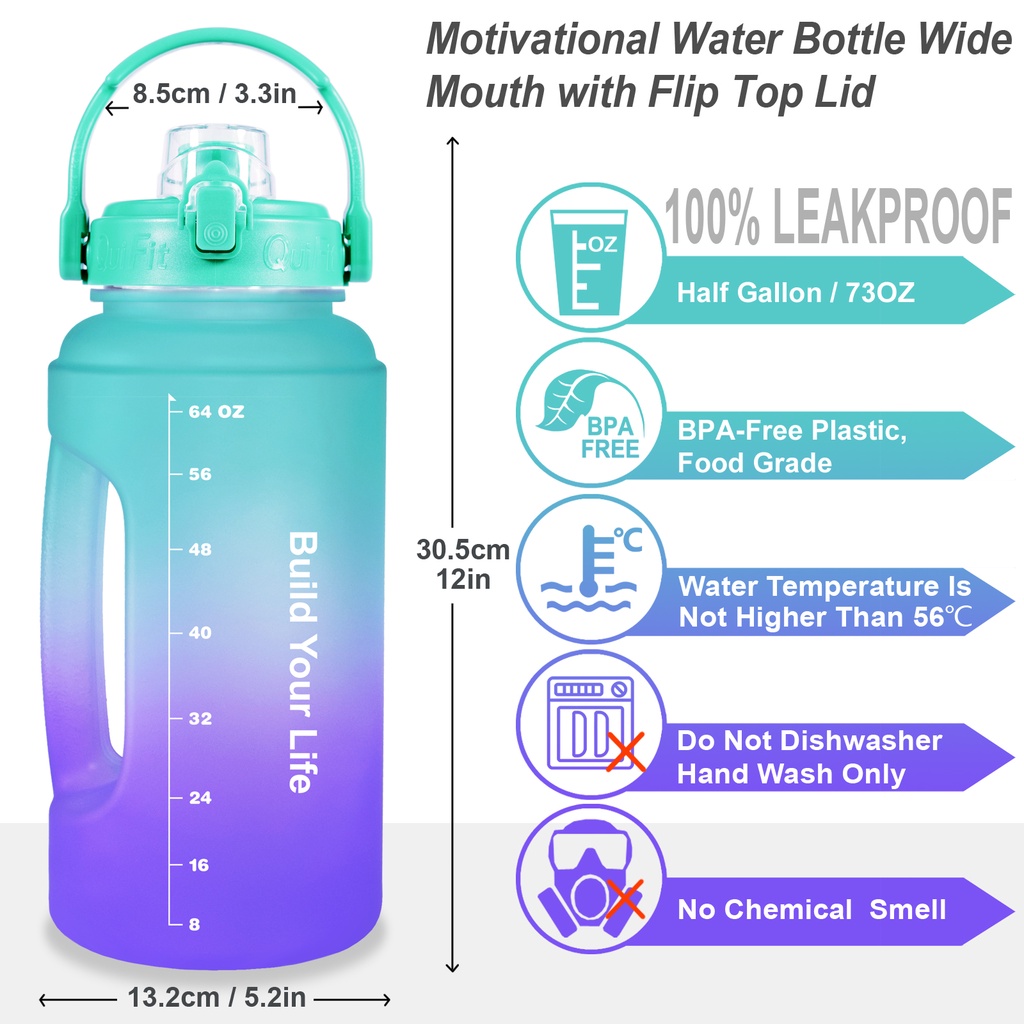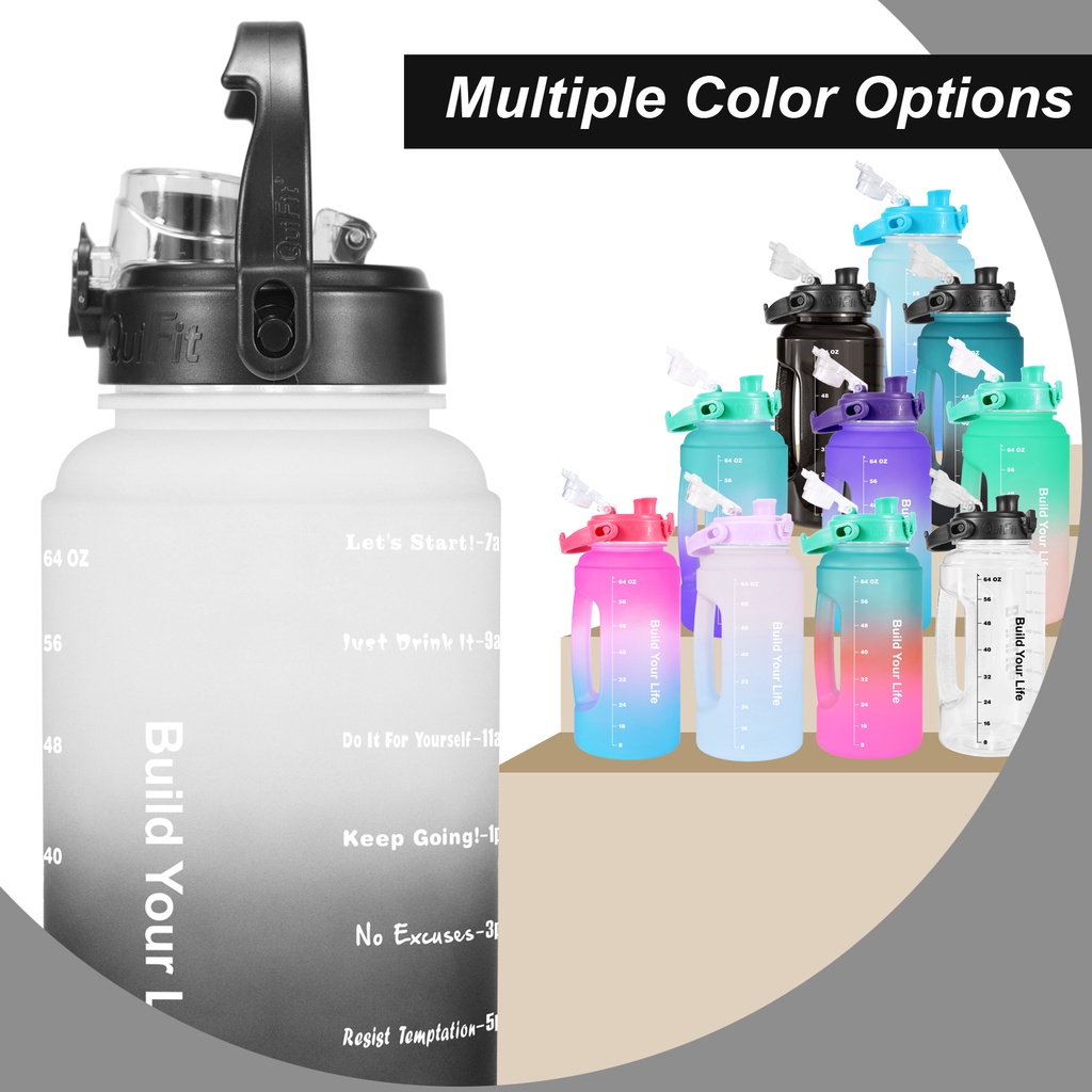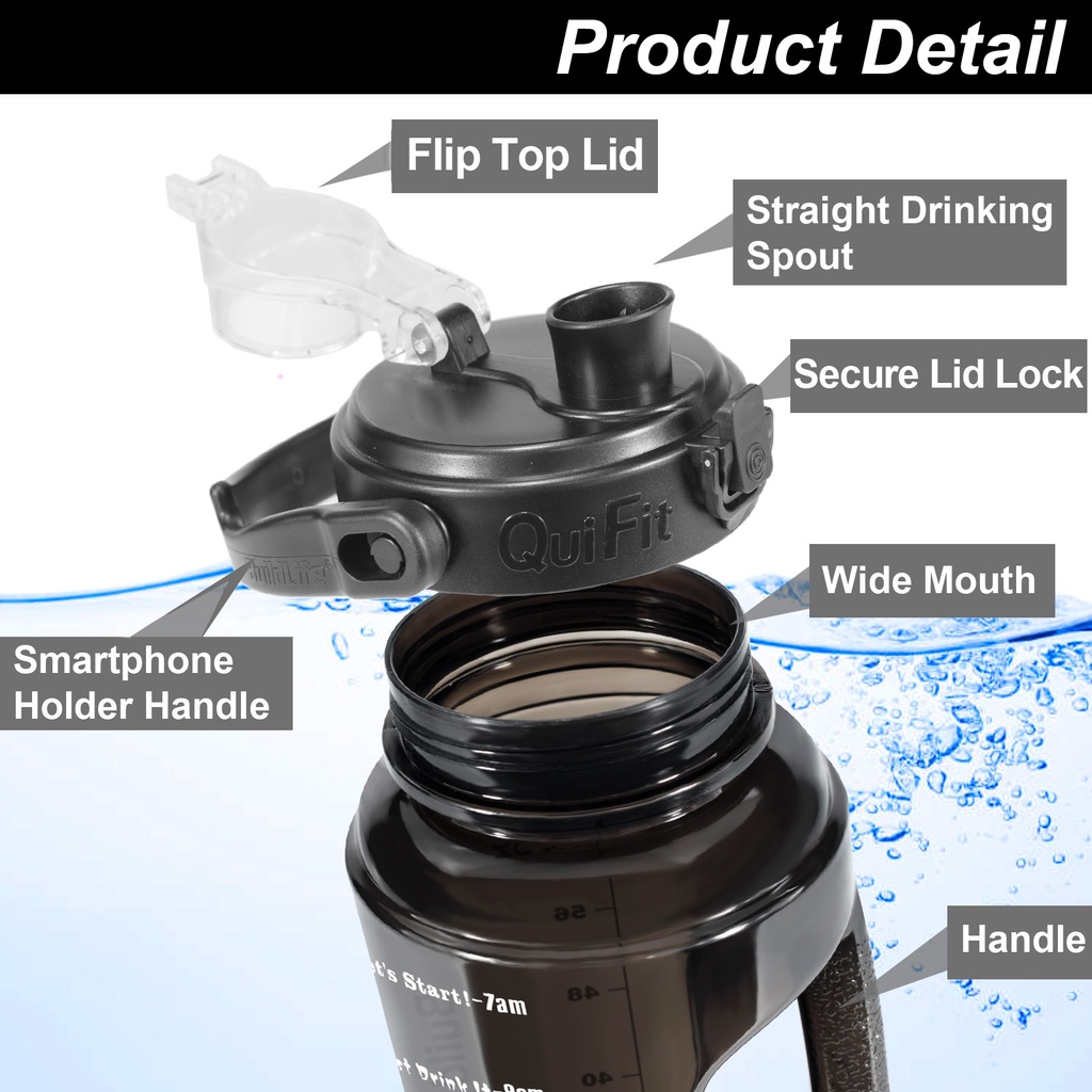 Quifit ขวดน้ํา ปากกว้าง ฝาพับ ไม่มีหลอด ทําความสะอาดง่าย (2.2 ลิตร) สําหรับยิมกลางแจ้ง