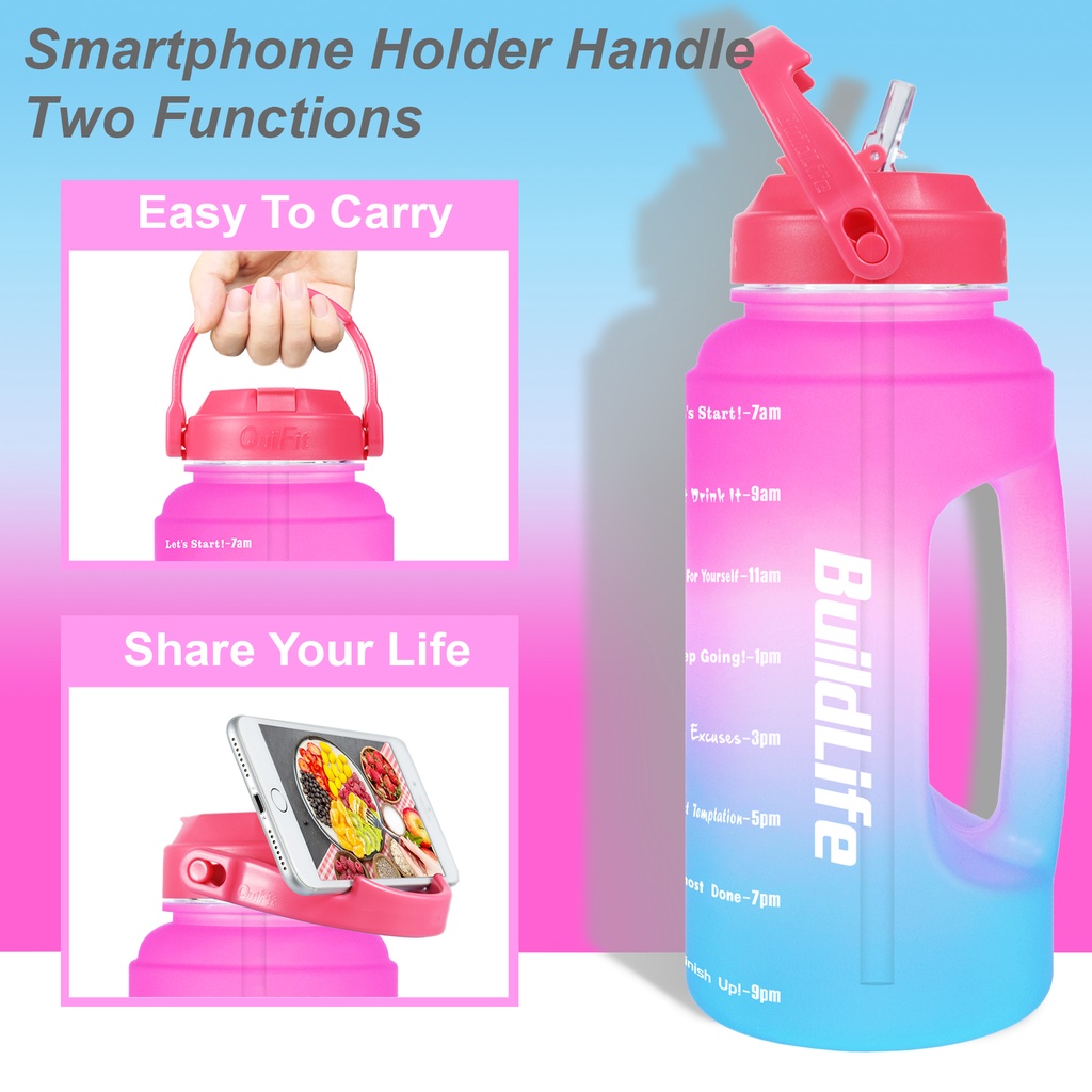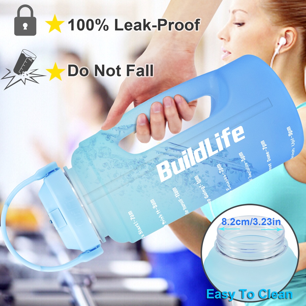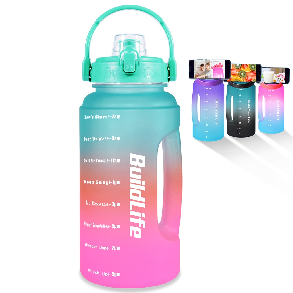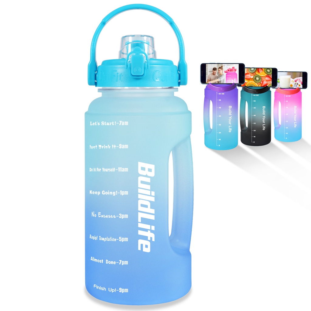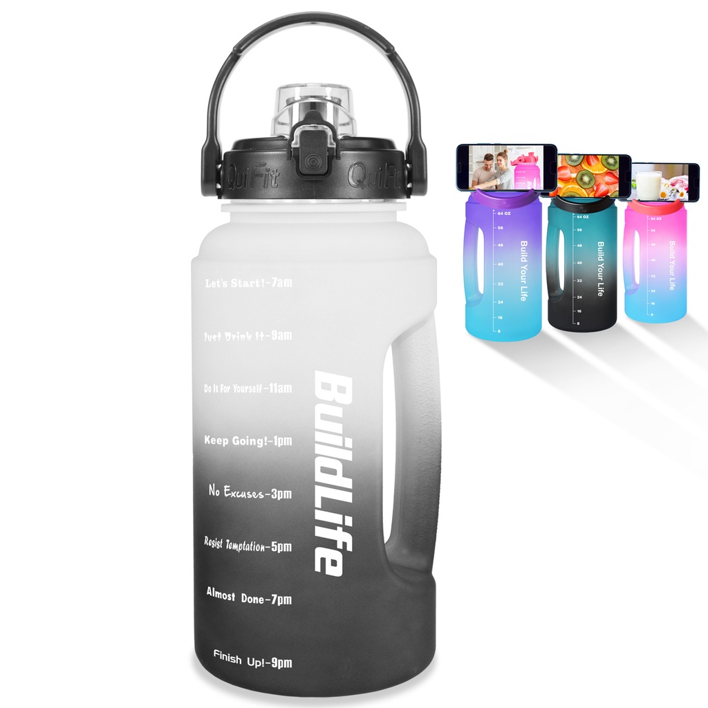 Quifit ขวดน้ํา ปากกว้าง ฝาพับ ไม่มีหลอด ทําความสะอาดง่าย (2.2 ลิตร) สําหรับยิมกลางแจ้ง