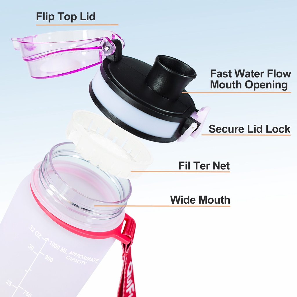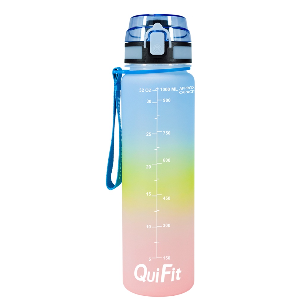 Quifit ขวดน้ํำ 1 ลิตร พร้อมตัวบอกเวลา ปลอดสาร BPA สําหรับเล่นกีฬา