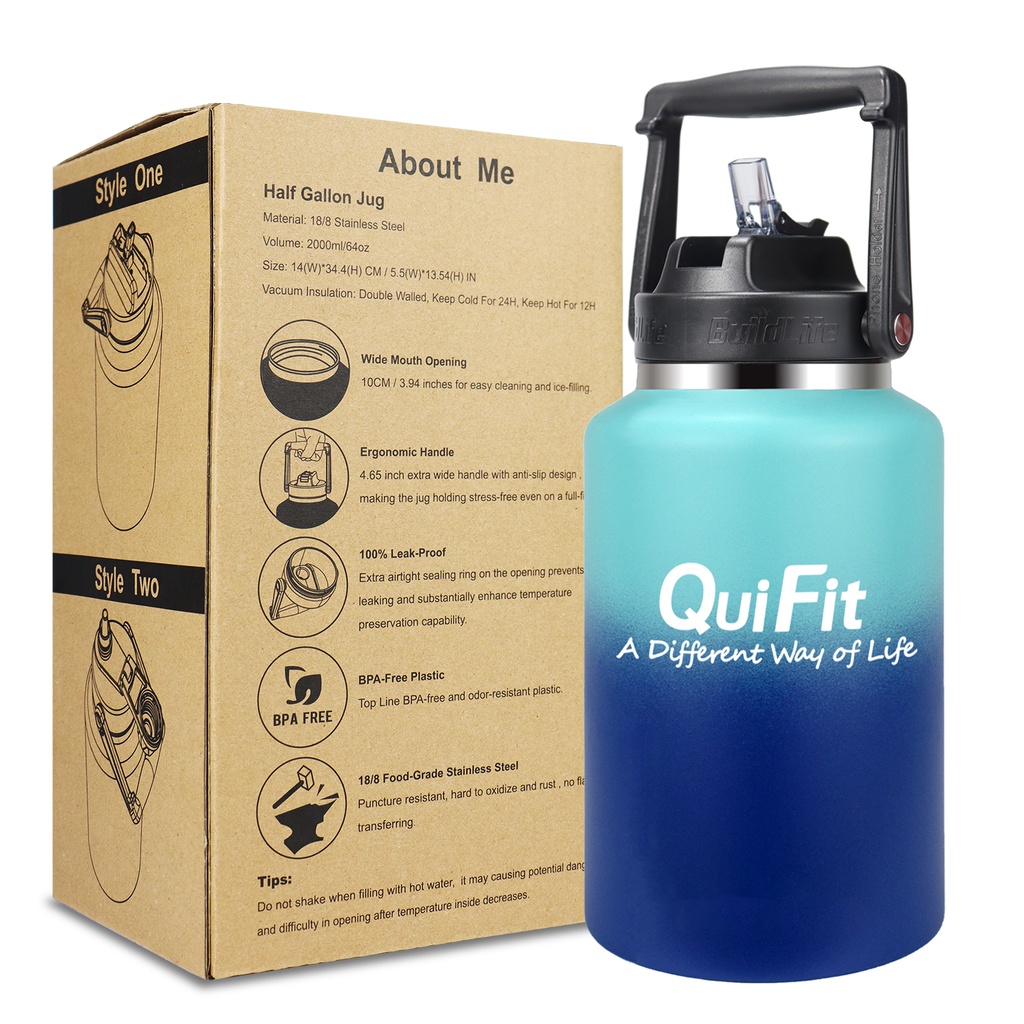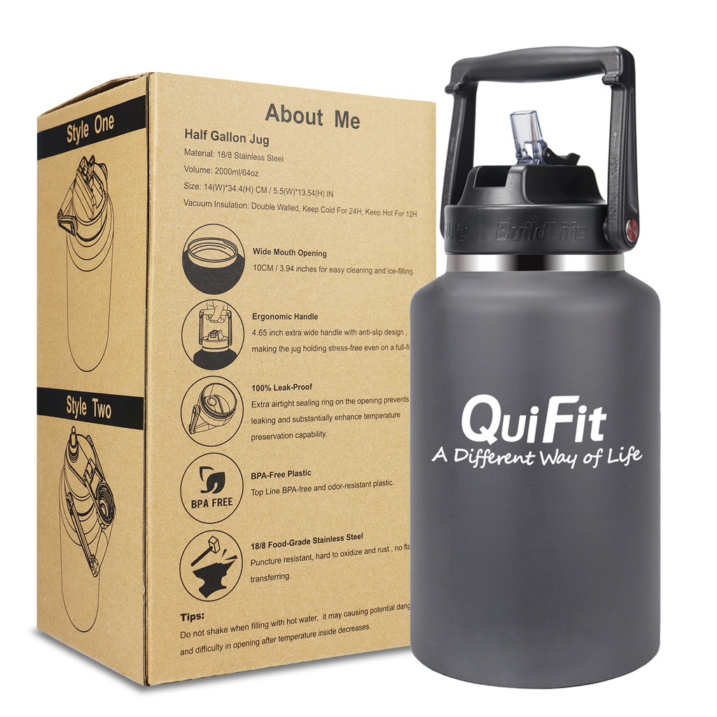 Quifit กระติกน้ําร้อน สเตนเลส 2 ลิตร และ 3.8 ลิตร ปลอด BPA พร้อมหลอดดูด ปากกว้าง เหมาะกับการพกพา เล่นกีฬา ฟิตเนส
