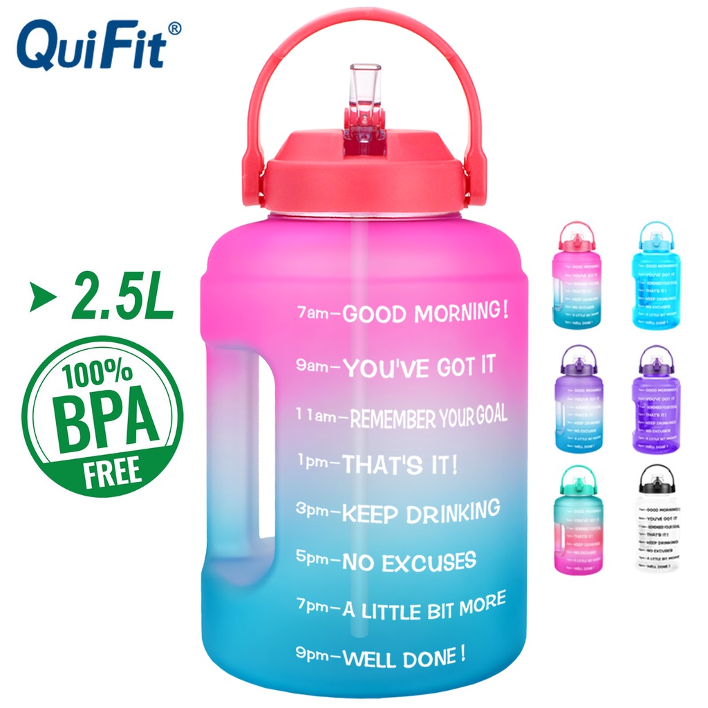 Quifit ขวดน้ํา พร้อมหลอดดูด 2.5 ลิตร ไร้ BPA ขนาดใหญ่ ใช้ซ้ําได้ กันรั่วซึม