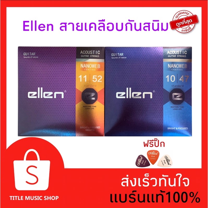 สายกีต้ าร์เคลือบกันสนิม✅ellen✅(สายกีต้าร์โปร่ง) รุ่นใหม่🔥ราคาประหยัด ฟรีปิ๊กกีต้าร์ทุกชุด