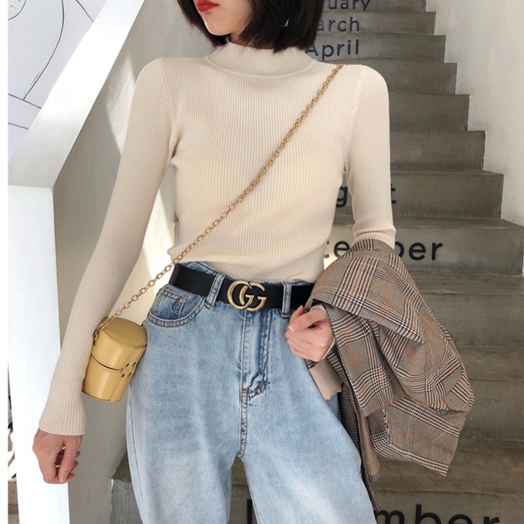 🌿SHOP MKLเสื้อไหมพรมคอเต่า แขนยาว🐢 สไตล์เกาหลี คอปกสูง#626