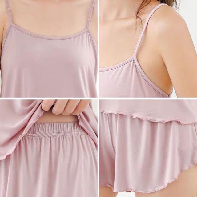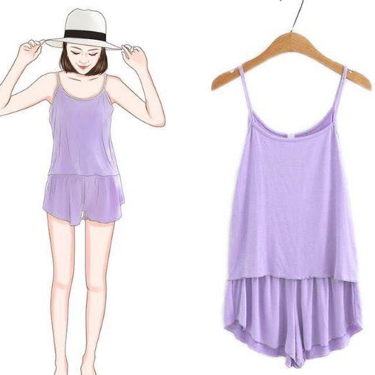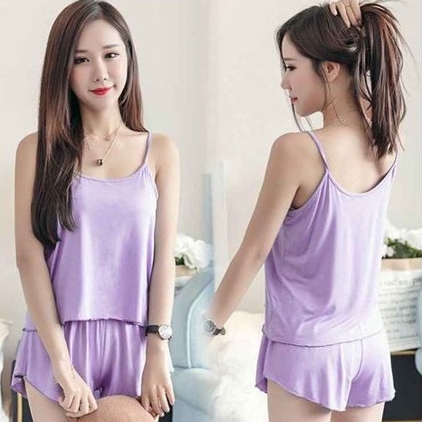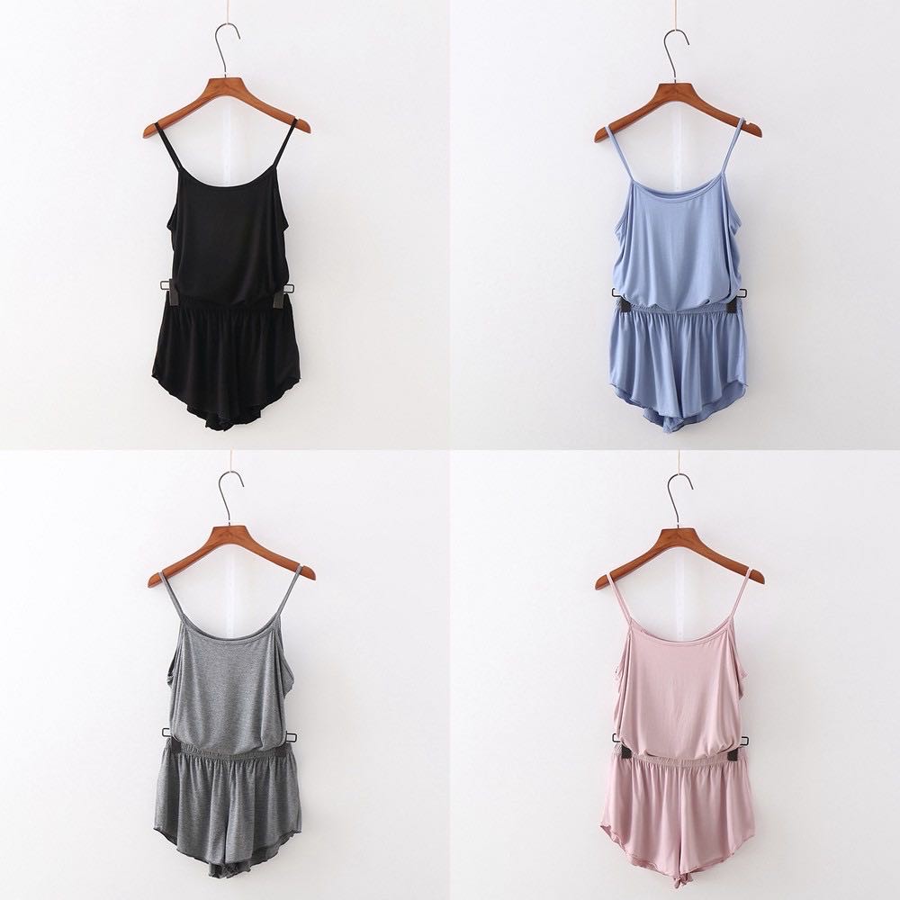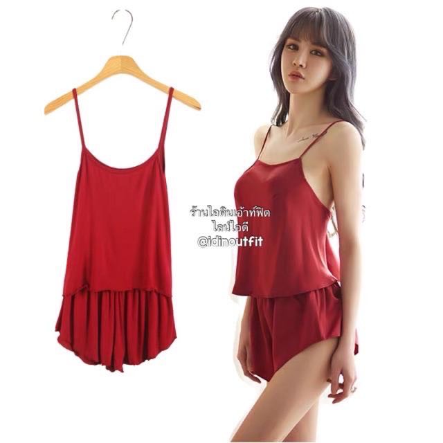 🌿SHOP MKL ชุดนอนมินิมอล 10 สีงานป้ายเกาหลี ชุดนอนสายเดี่ยว+ขาสั้น สีพื้น#6001
