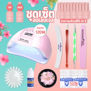 CHARZIEG ชุดท ำเล็บเจลอุปกรณ์ครบ เครื่องอบ SUN ONE 60W/120W+สีเจล5-10-20ขวด+ชุดเคลือบสีเจล