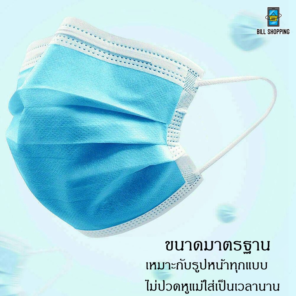 Face Mask หน้ากากอนามัย หนา 3 ชั้น จำนวน 50 ชิ้น ไม่เจ็บหู แมสปิดจมูก หน้ากากอนามัย แมส 3 Ply (1 แพ๊ค/50ชิ้น) คุณภาพดี