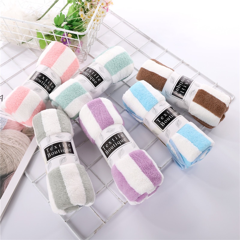 【ยกแพ็ค 6 ผืน】ผ้าเช็ดผมขนเป็ด 35x75cm ✨ ผ้าขนหนูลายริ้ว นุ่มฟู ซับน้ำเยี่ยม แห้งไว (คละสีสุดคุ้ม)