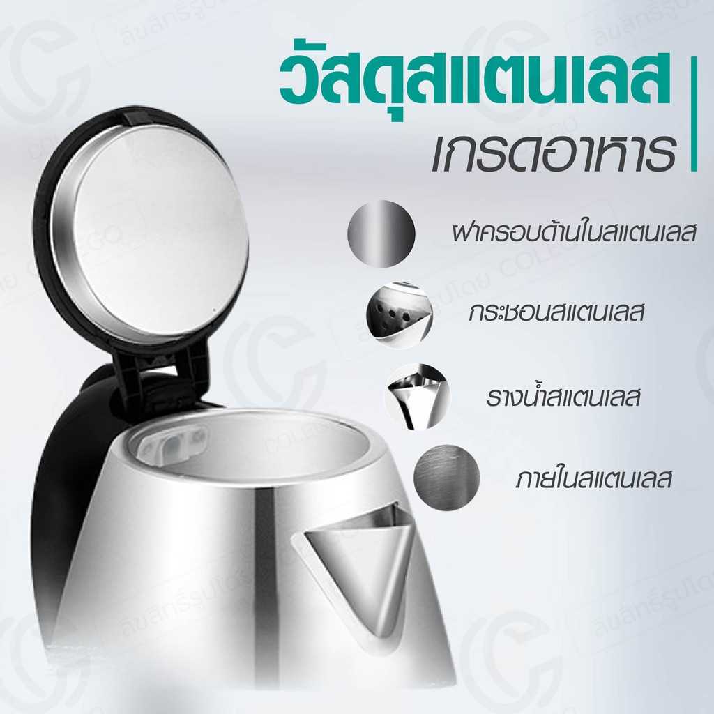 COLEGO NEW++ ⚡กาน้ำร้อนไฟฟ้า กาต้มน้ำ กาต้มน้ำสแตนเลส กาต้มน้ำไฟฟ้าไร้สาย กาน้ำร้อนไฟฟ้าขนาดเล็ก【ขนาด 2 ลิตร】