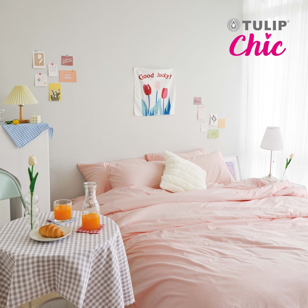 TULIP CHIC สีพื้นอัดลาย CHIC M01 ชุดเครื่องนอน ผ้า ปูที่นอน ผ้านวม สัมผัสนุ่ม สบายสไตล์มินิมอล