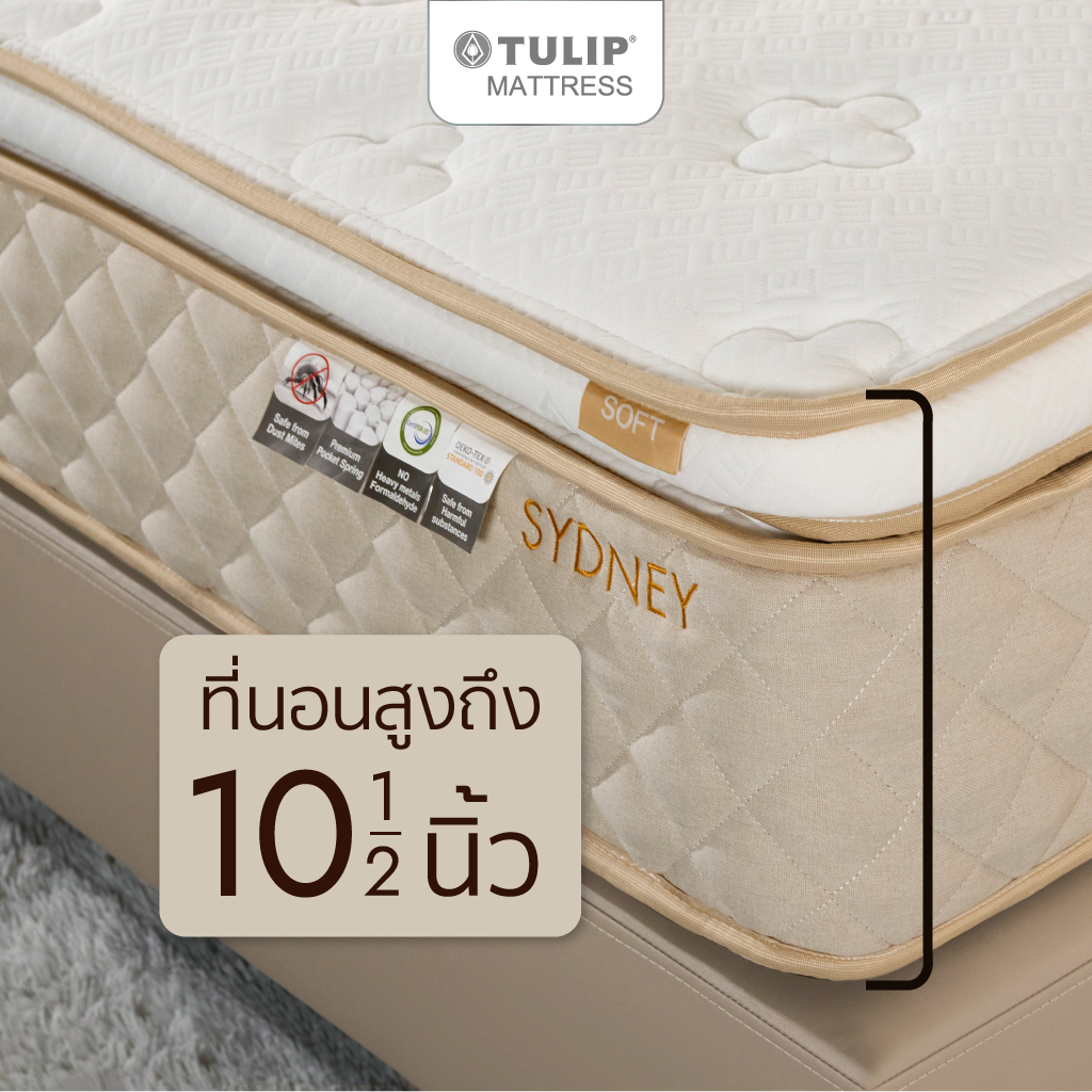 ที่นอน TULIP SYDNEY ที่นอนนุ่มไม่ปวดหลัง พ็อกเก็ตสปริง 5 โซน กันไรฝุ่น สุญญากาศแบบกล่อง [ฟรีชุดเครื่องนอน]