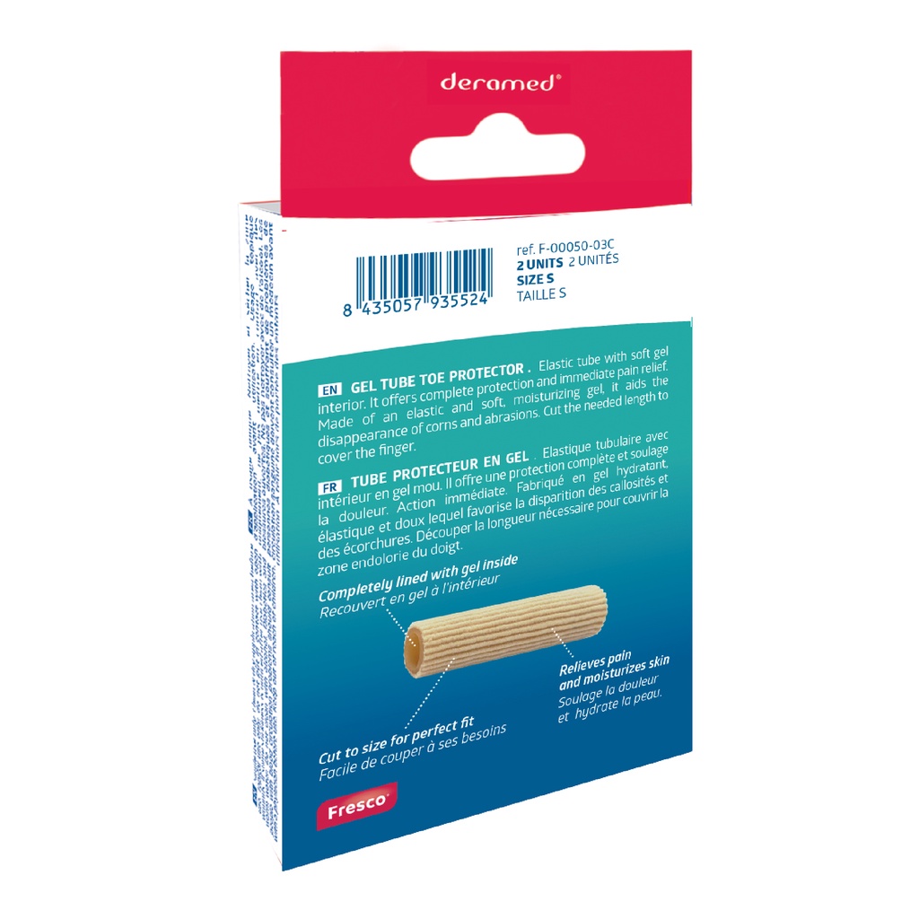 Deramed Footcare Gel Tube Toe Protector ปลอกหุ้มเจลแบบเปิด กันกระแทกและเสียดสี ช่วยลดแรงเสียดสีที่บาดแผล สมานแผล