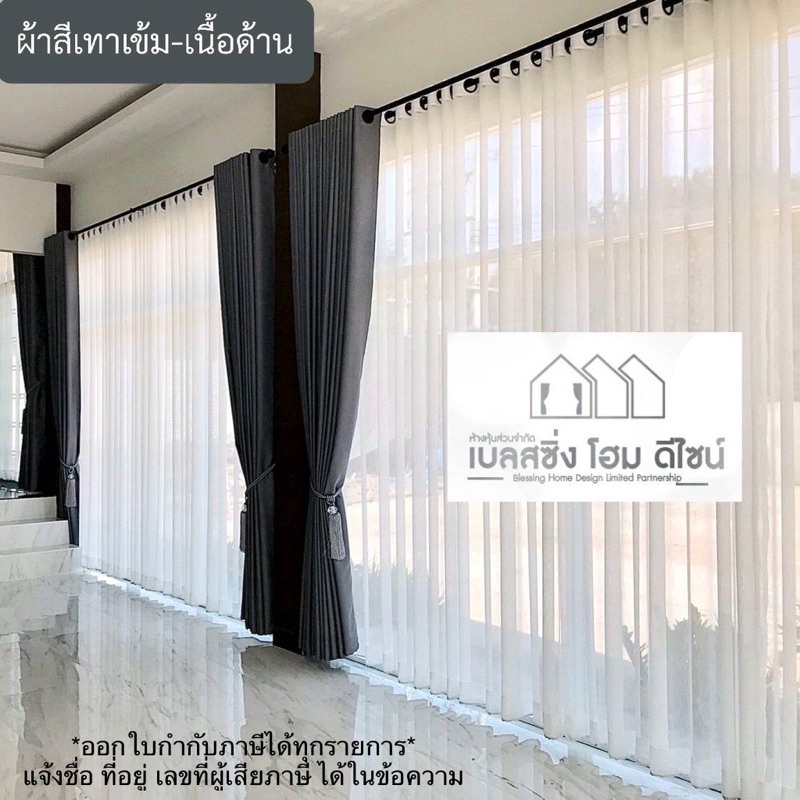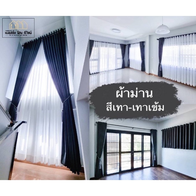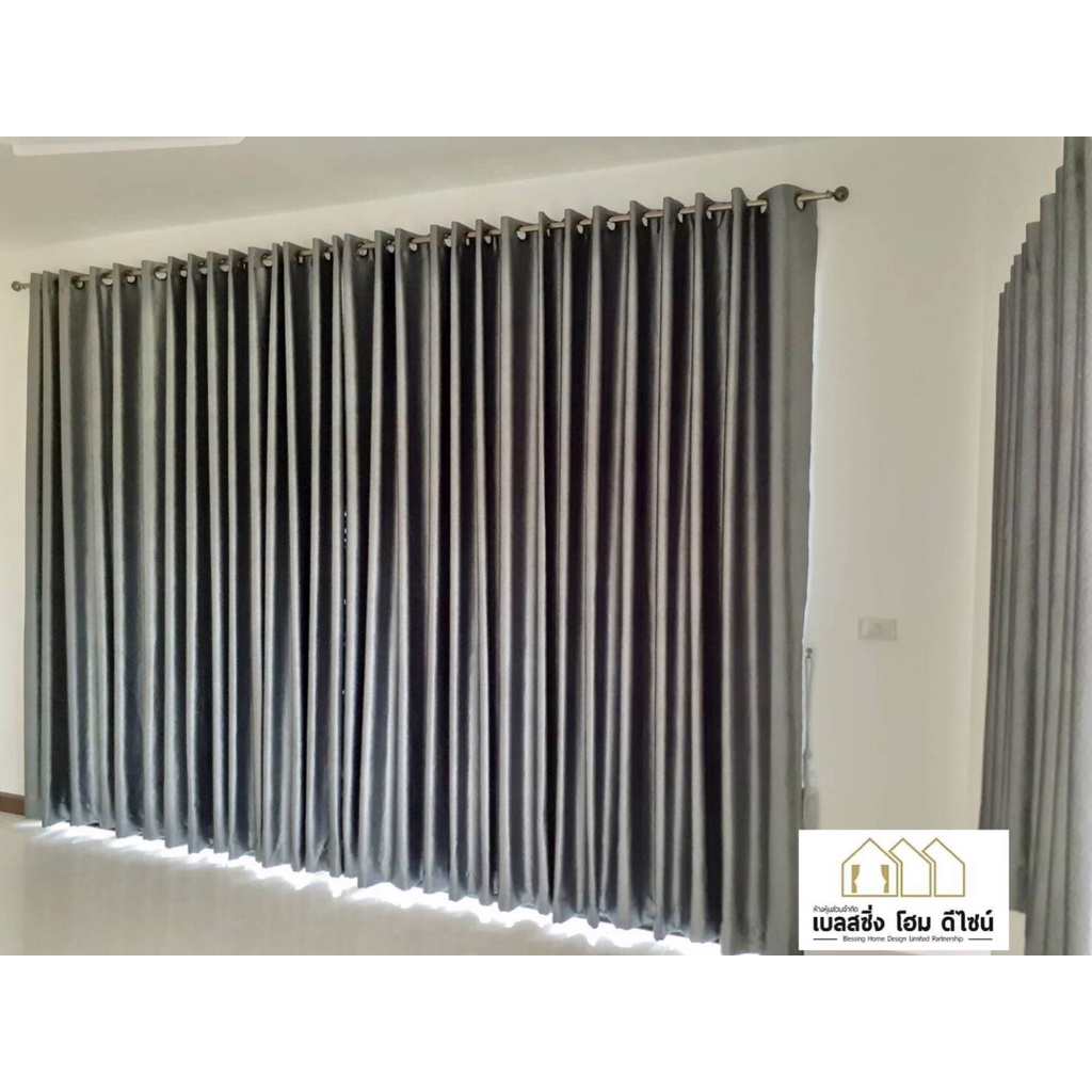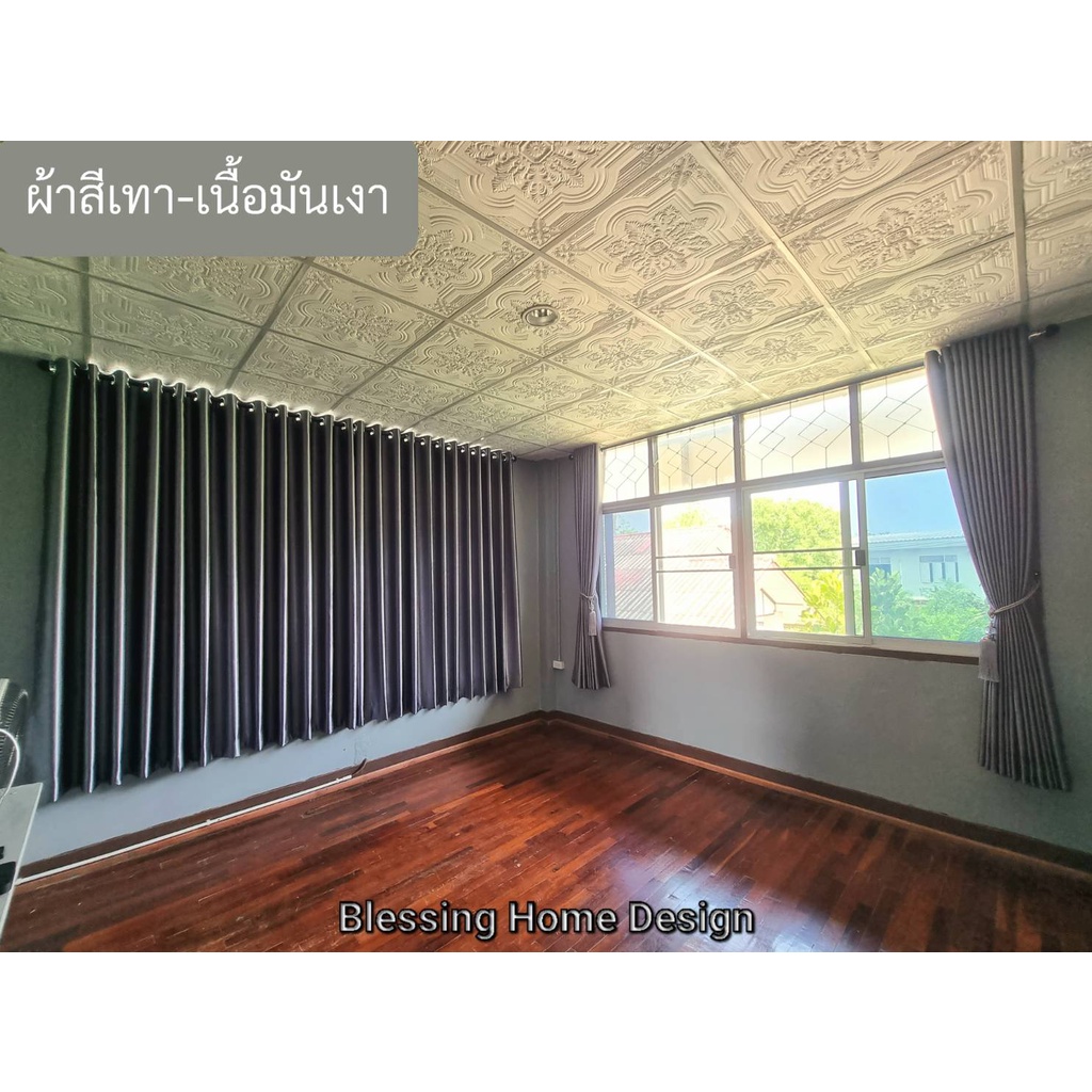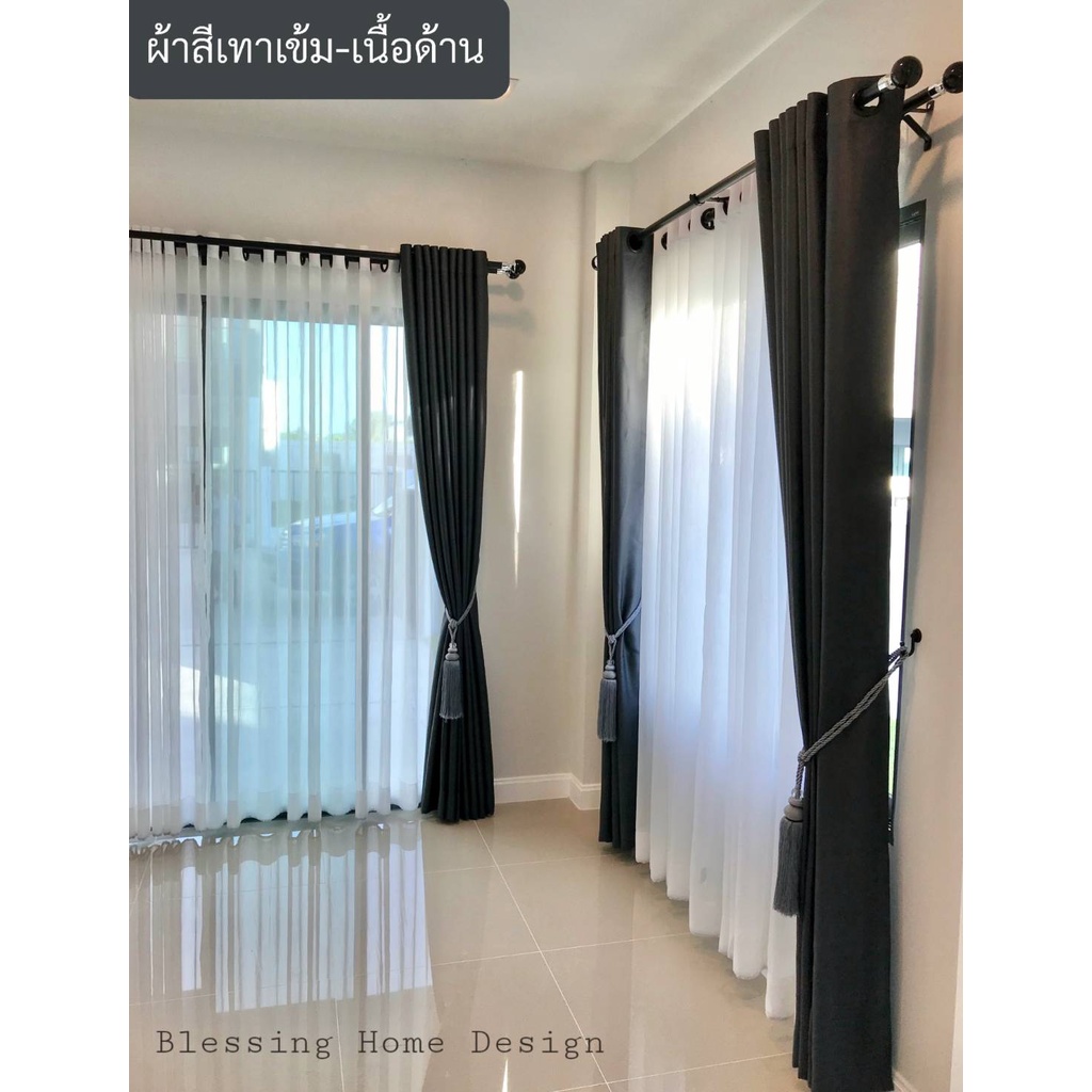 BS HOME ผ้าม่านตาไก่ ผ้าดิมเอาท์ สีเทาเข้มเนื้อเงา-เนื้อด้าน ทึบแสง กันUV95% แถมสายรวบม่าน (จัดส่ง 2-3 วัน)