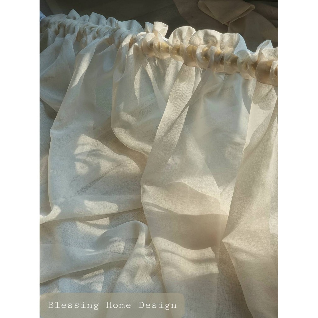 BS HOME ผ้าม่านตาไก่ ผ้าโปร่งสอดราง มินิมอลสไตล์ มีสองสีให้เลือก แถมสายรวบม่าน (จัดส่ง 2-3 วัน)