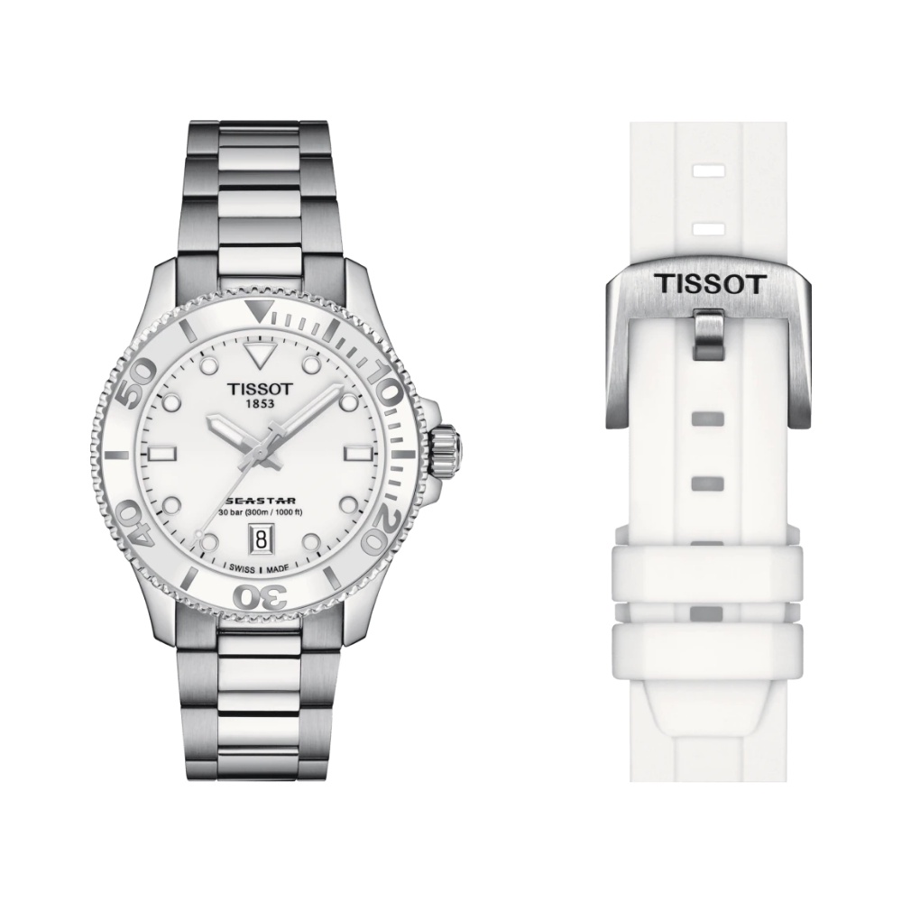 Tissot Seastar 1000 36mm ทิสโซต์ ซีสตาร์ 1000 36มม.T1202101101100 สีขาว แถมสายซิลิโคนสีขาว นาฬิกาผู้หญิงและผู้ชาย