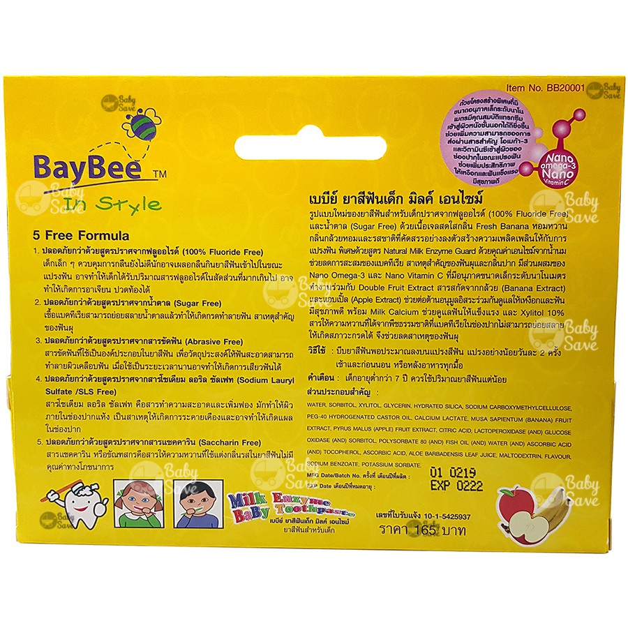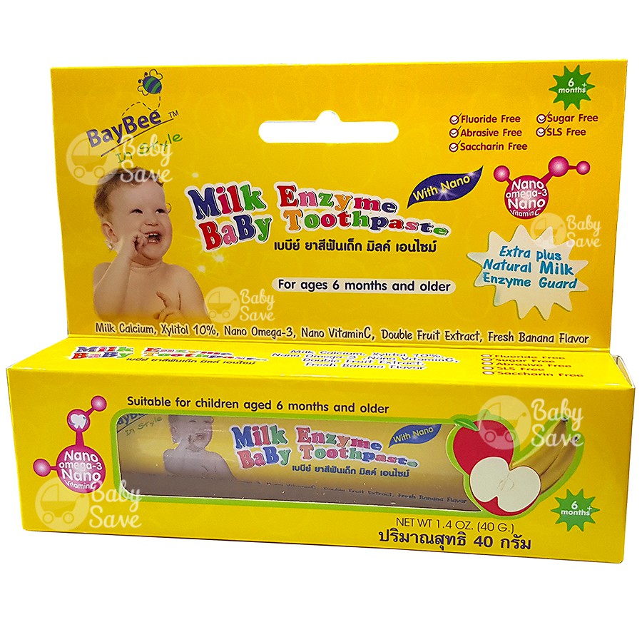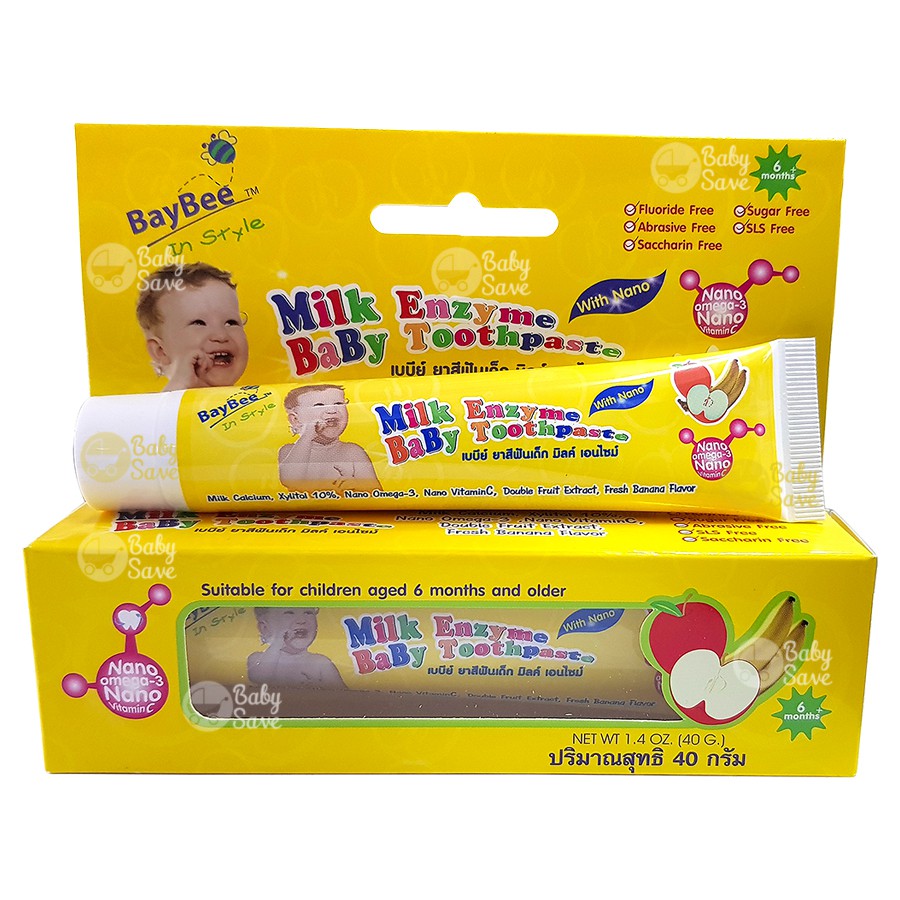 Baybee ยาสีฟันเด็กมิลค์เอนไซม์ 40g. เด็ก 6 เดือนขึ้นไป (Foodgrade) ปราศจากฟลูออไรด์