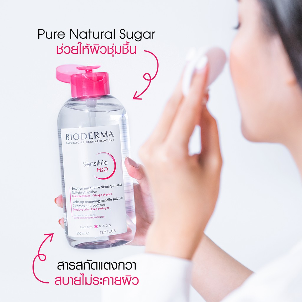 Bioderma Sensibio H2O ไมเซล่าคลีนซิ่งวอเตอร์ สำหรับผิวแพ้ ระคายง่าย (500 มล. 2 ขวด แบบฝาปั๊ม)