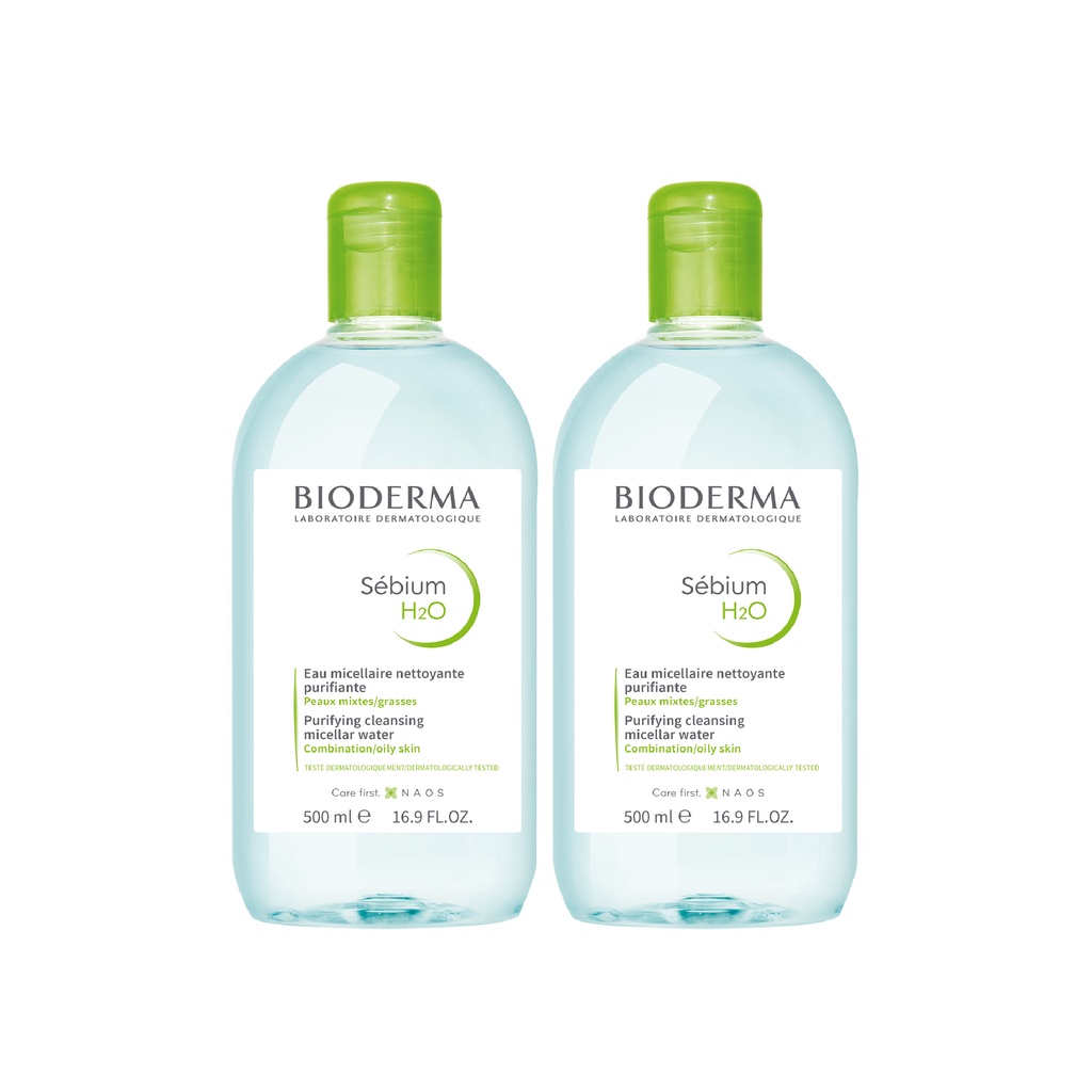 Bioderma Sebium H2O ไมเซล่าคลีนซิ่งวอเตอร์ คลีนซิ่งผิวมัน แพ้ เป็นสิวง่าย 500 มล. 2 ขวด