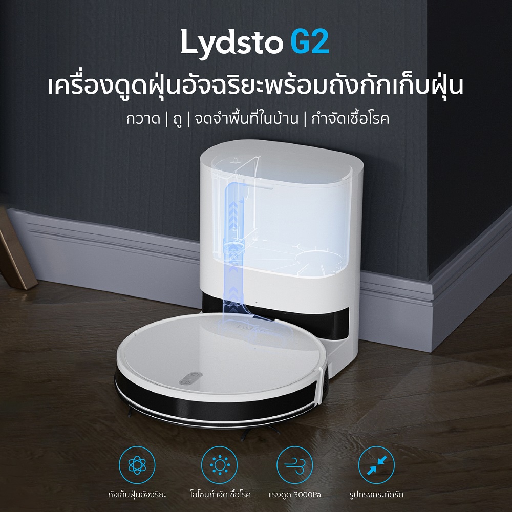[ลดเหลือ 6742] Lydsto Robot G2 หุ่นยนต์ดูดฝุ่น 4 in 1 ถูพื้น ดูดฝุ่น ถังเก็บฝุ่น โอโซนกำจัดเชื้อโรค -3M
