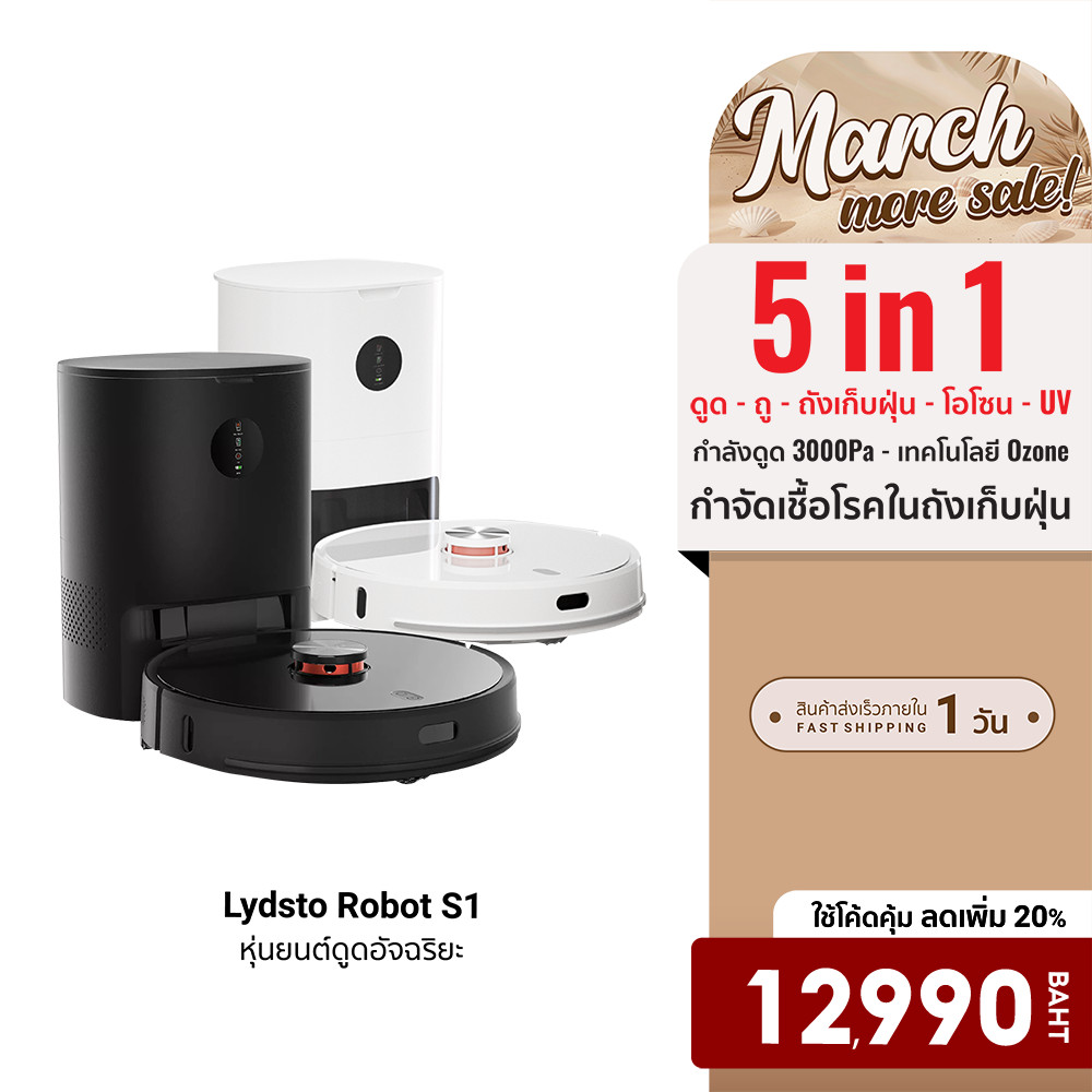 [ลดเหลือ 12990] Lydsto Robot S1 หุ่นยนต์ดูดฝุ่น เรดาร์ LDS 5 in 1 ถูพื้น เก็บฝุ่น ดูดฝุ่น โอโซน UV -3M