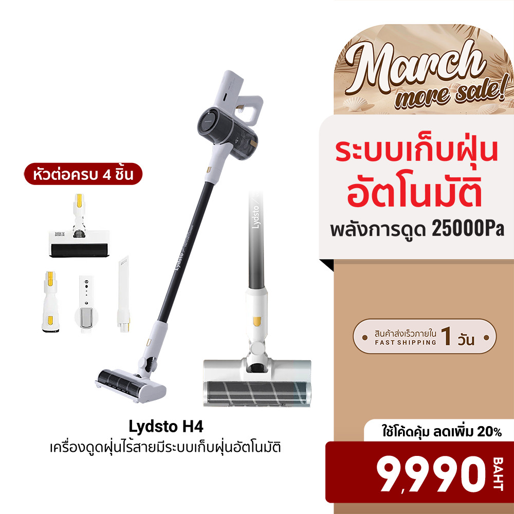 [ลดเหลือ 9990] Lydsto H4 เครื่องดูดฝุ่นไร้สายมีระบบเก็บฝุ่นอัตโนมัติ ดูดแรง แบตเตอรี่ 2500mAh มีไฟ LED -3M