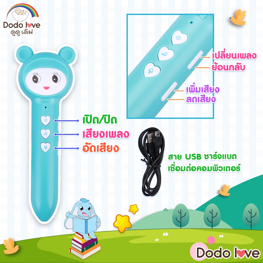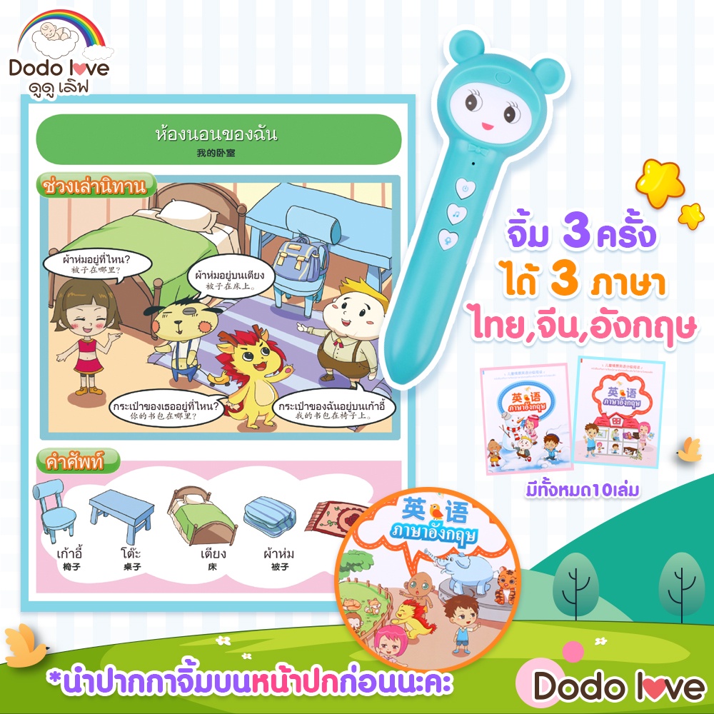 DODOLOVE ชุดหนังสือนิทานพร้อมปากกาพูดได้ ฝึกอ่านออกเสียงภาษาอังกฤษเบื้องต้นสำหรับหนูน้อย