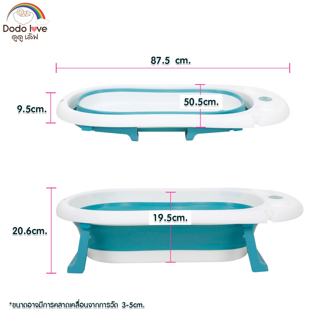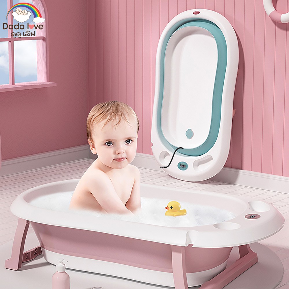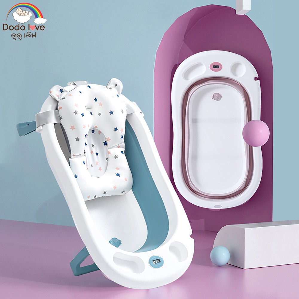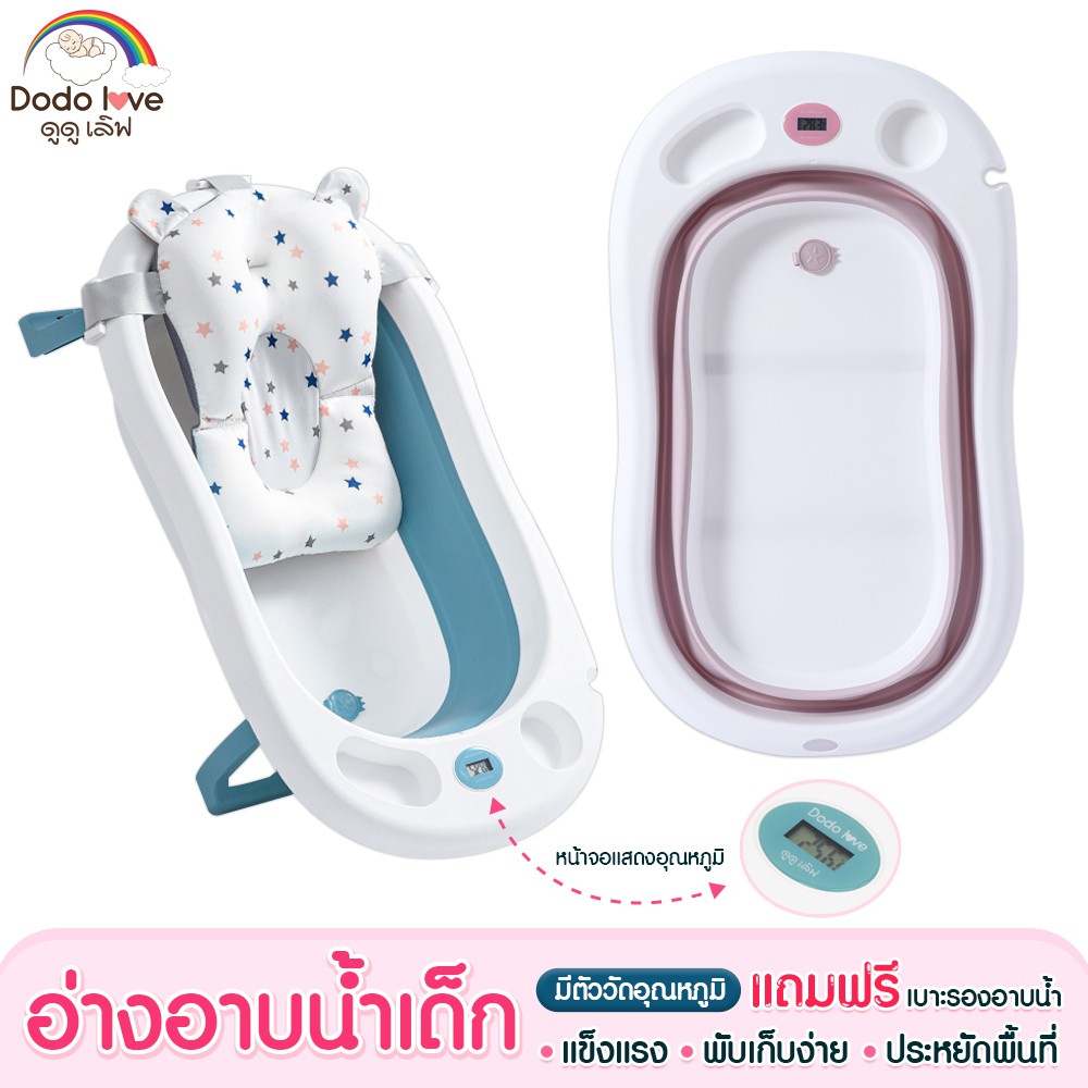DODOLOVE อ่างอาบน้ำเด็ก วัดอุณหภูมิได้ พับเก็บได้ อ่างอาบน้ำอเนกประสงค์พับได้ มีจุกปล่อยน้ำ