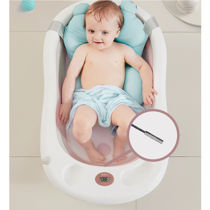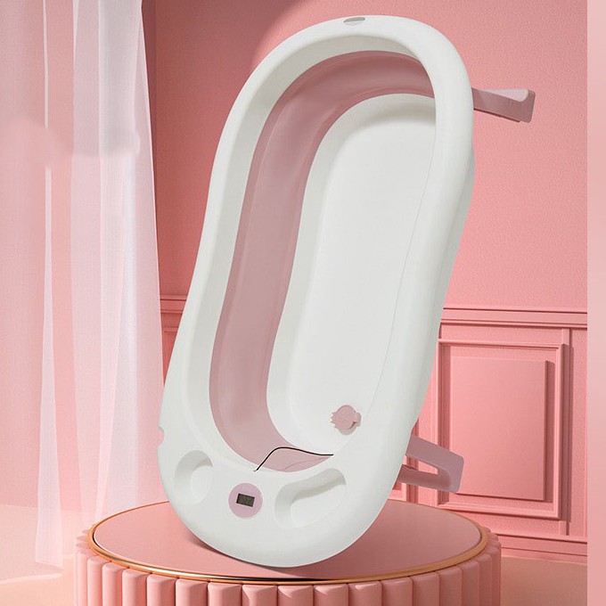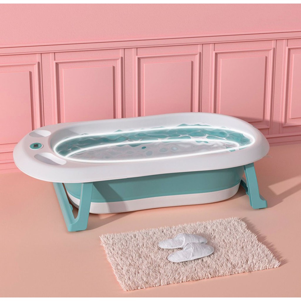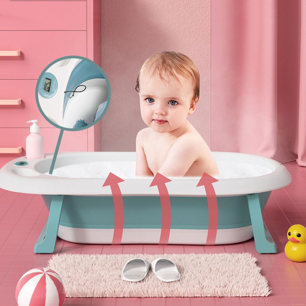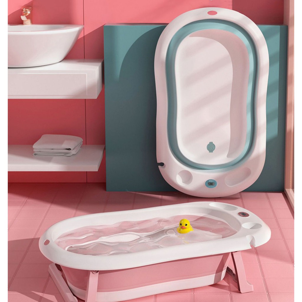 DODOLOVE อ่างอาบน้ำเด็ก วัดอุณหภูมิได้ พับเก็บได้ อ่างอาบน้ำอเนกประสงค์พับได้ มีจุกปล่อยน้ำ