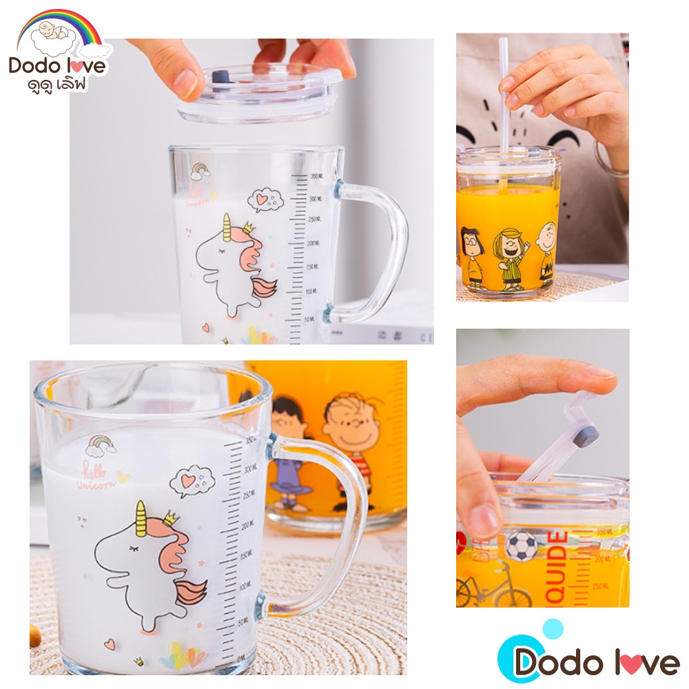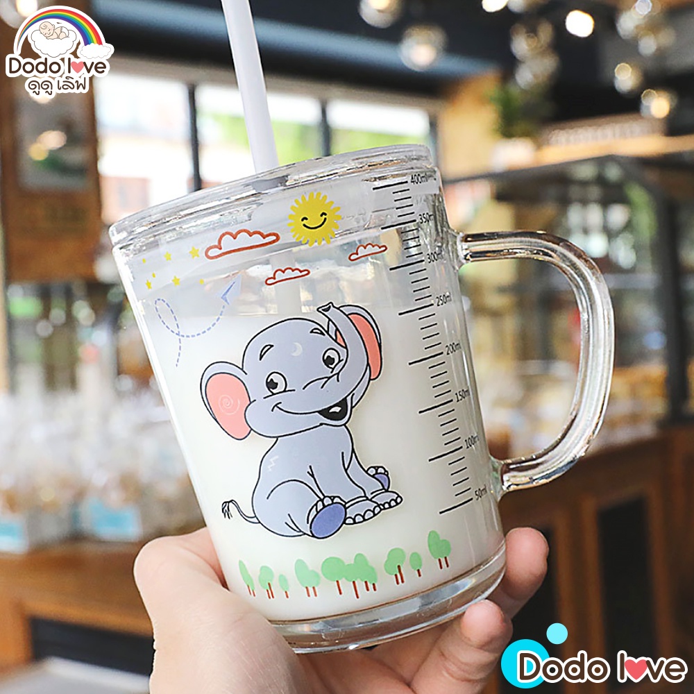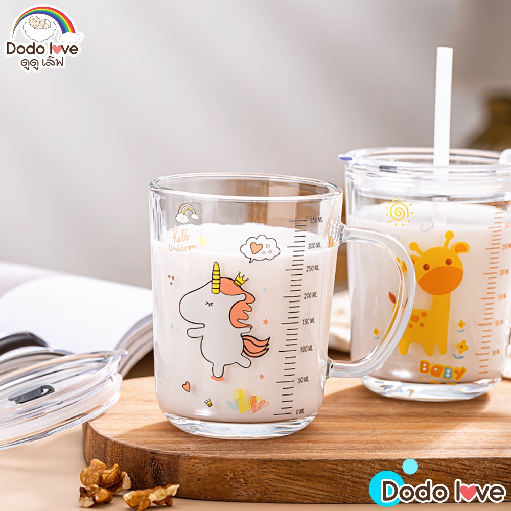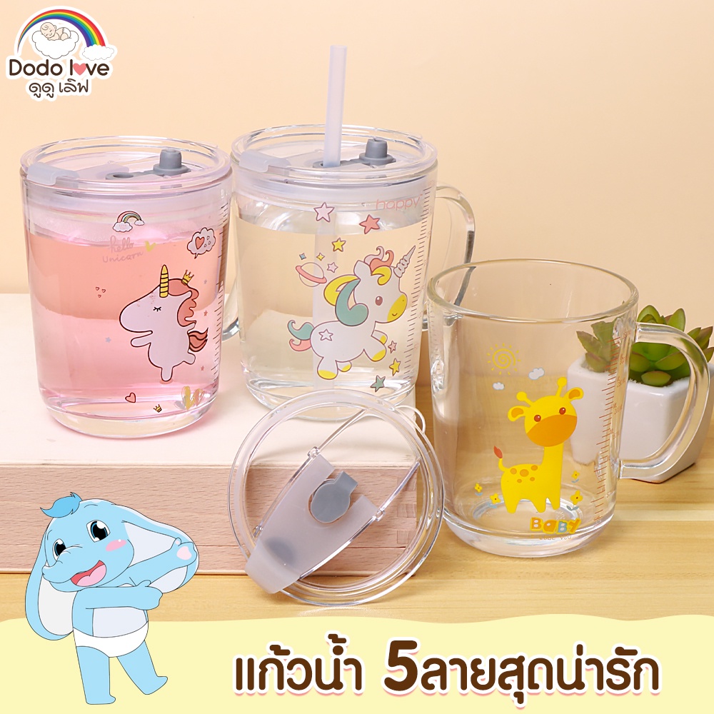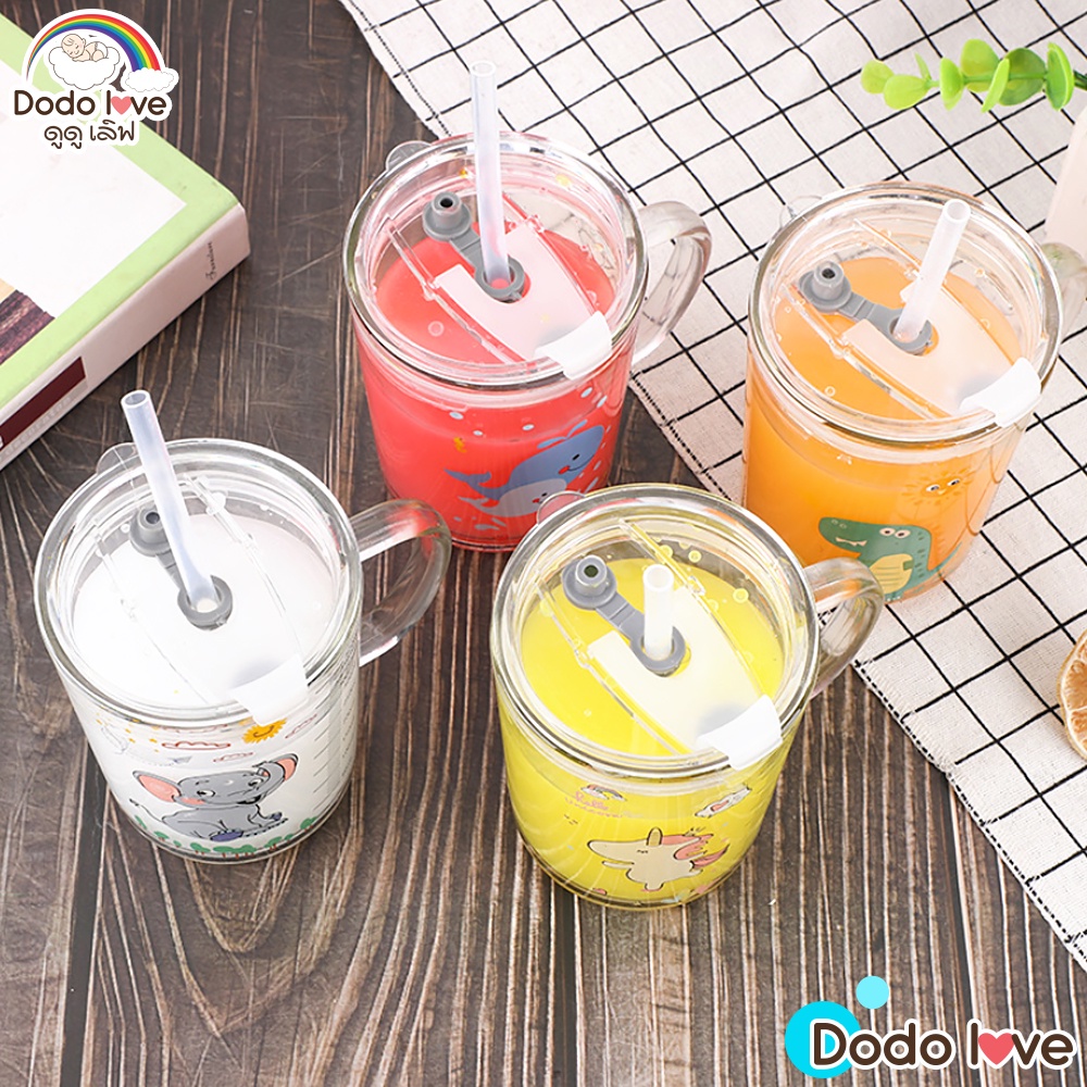 DODOLOVE แก้วน้ำเด็ก แก้วน้ำ มีฝาเปิด-ปิดสามารถกันหกได้ พร้อมหลอดดูด ขนาด 350 ML.