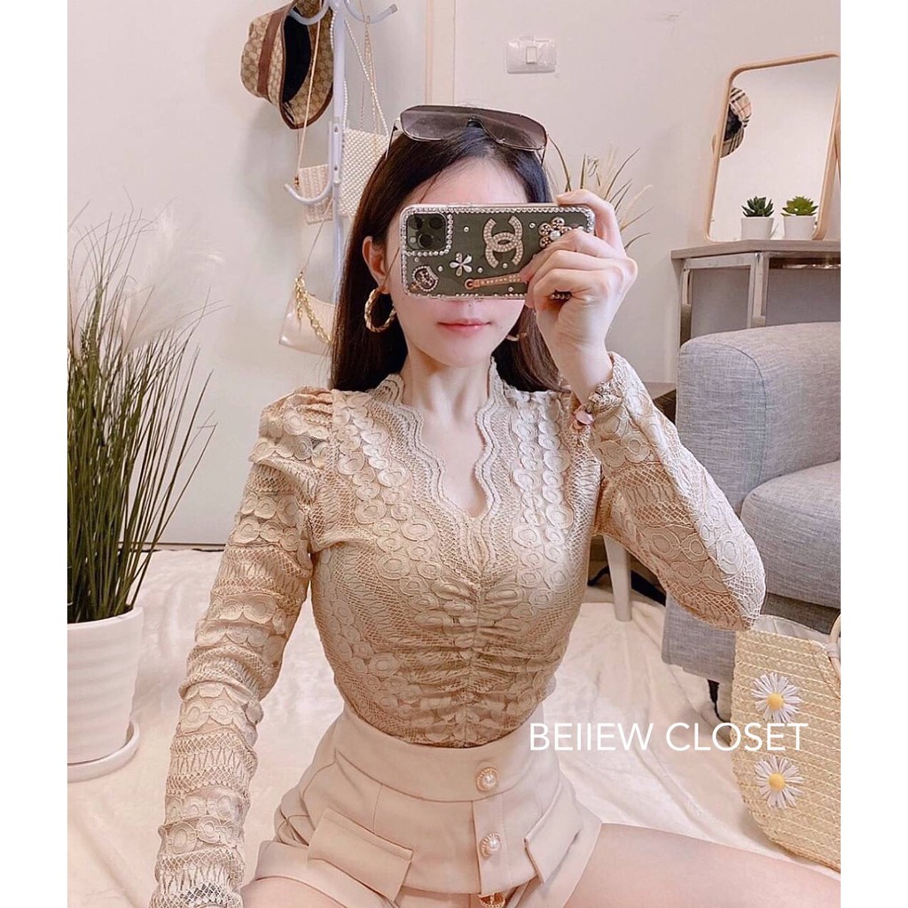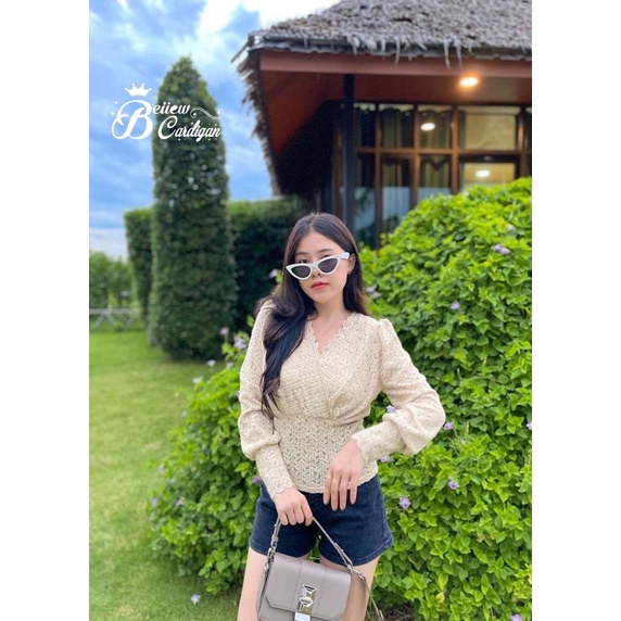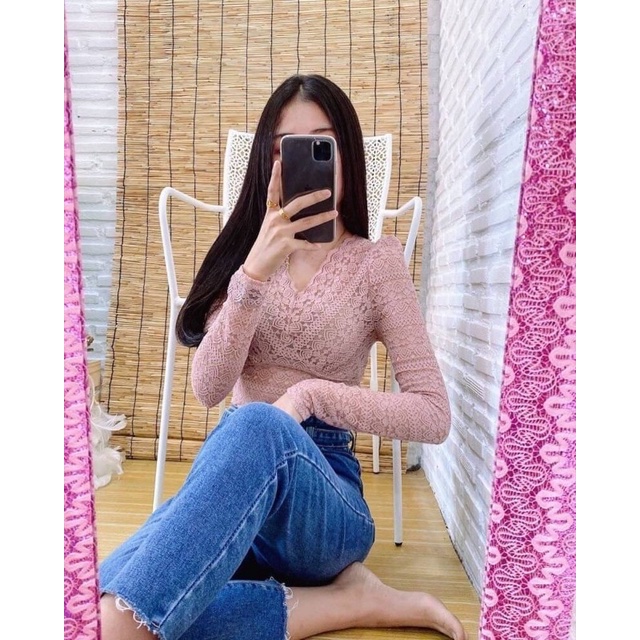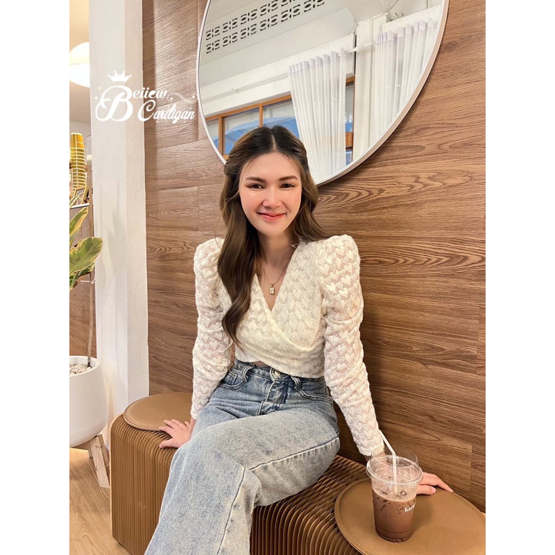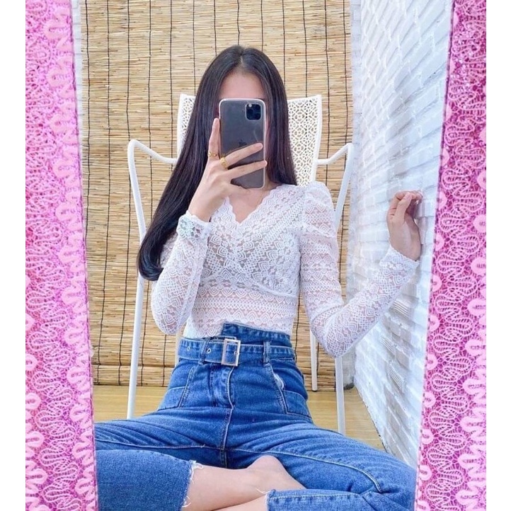 งานแฟชั่นลูกไม้แขนยาว งานที่สาวๆตามติดแฟชั่นงานลูกไม้ (ใหม่)เป็นลูกไม้ลายดอกสลับลายคลื่นแต่งใหล่ยกแขนตุ๊กตาแขนยาว