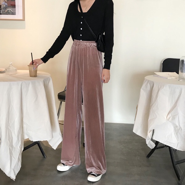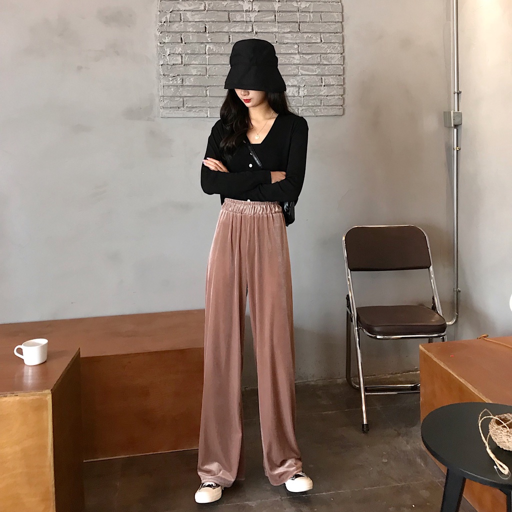 กางเกงขากว้าง ทรงเอวสูง สไตล์เกาหลี สําหรับผู้หญิง