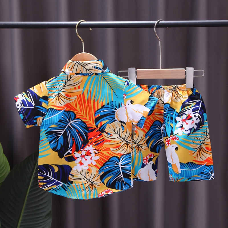เสื้อเชิ้ตเด็กผู้ชาย 0-5 ปี เสื้อเชิ้ตชายหาดเด็กผู้ชาย เสื้อเด็กเล็กฤดูร้อน + กางเกงขาสั้น 2 ตัว เหมาะสำหรับวันสงกรานต์