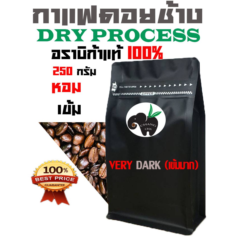 !! DRY PROCESS!! เ มล็ดกาแฟอราบิก้า 100% คั่วอ่อน/คั่วกลาง/คั่วเข้ม/คั่วเข้มมาก บรรจุถุงซิปล็อคติดวาล์ว 250 กรัม