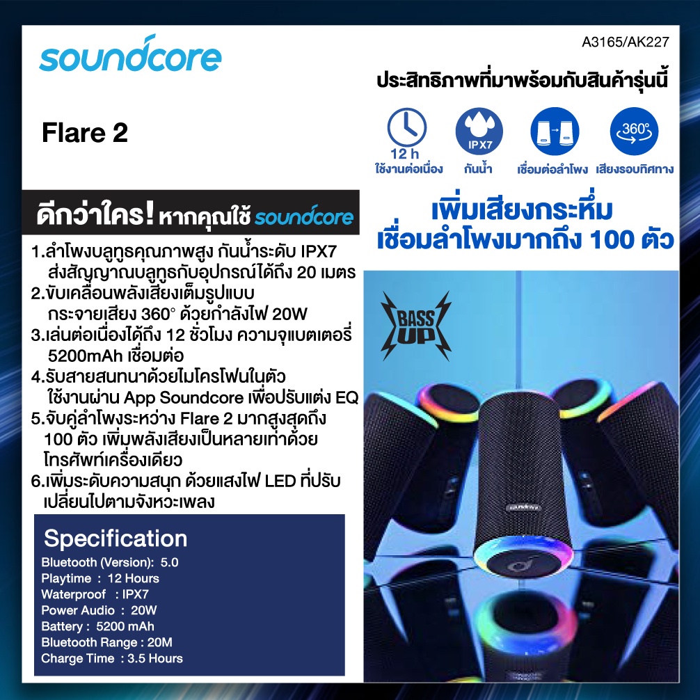 Soundcore Flare 2 จับคู่ลำโพงได้กว่า 100 ตัว ลำโพงบลูทูธ เล่นเพลงเสียงกระหึ่มรอบทิศ