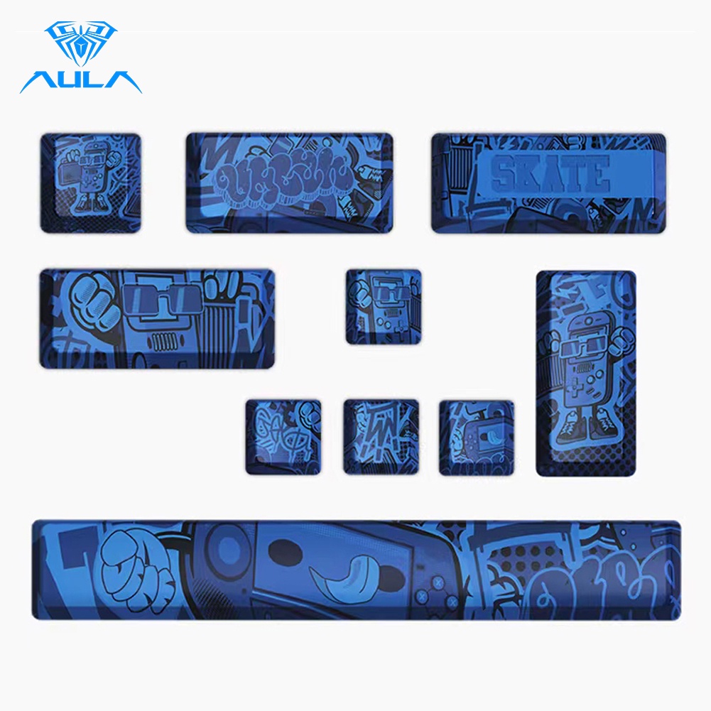 Aula PBT ปุ่มกดคีย์บอร์ด 10 คีย์ 3 สี คุณภาพสูง ถอดออกได้ กันลื่น ทนต่อการสึกหรอ