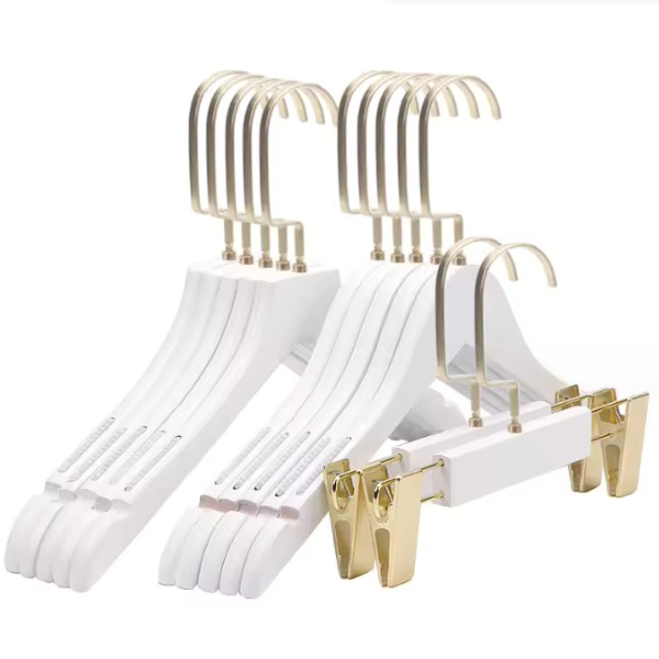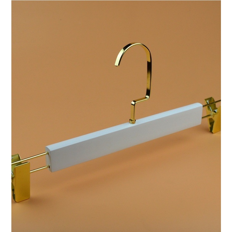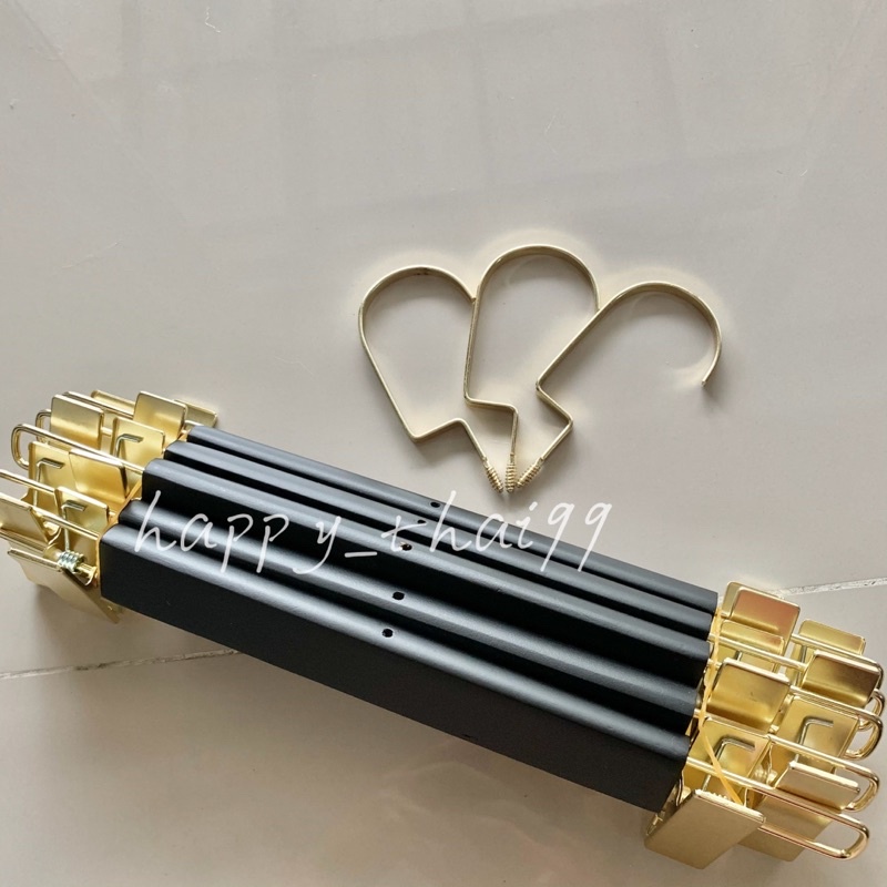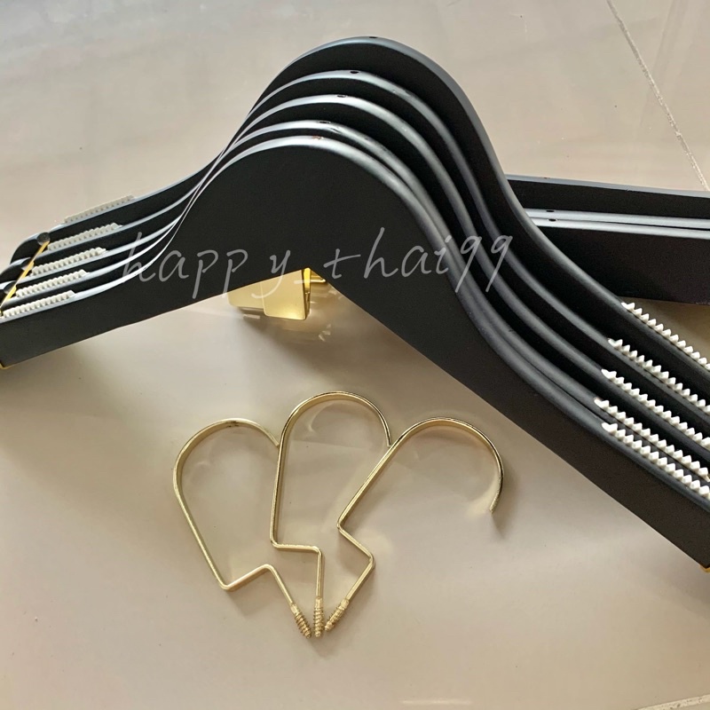 HappyThai ไม้แขวนเสื้อสีขาวสีดำและชั้นวางกางเกง มีแถบกันลื่นพร้อมตะขอสีทอง10cm (6ชิ้น/12ชิ้น)