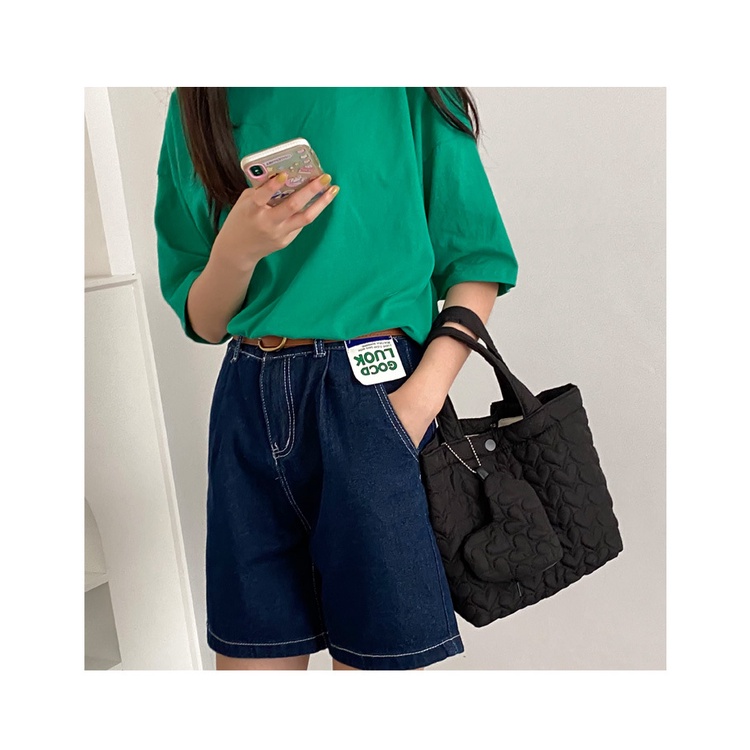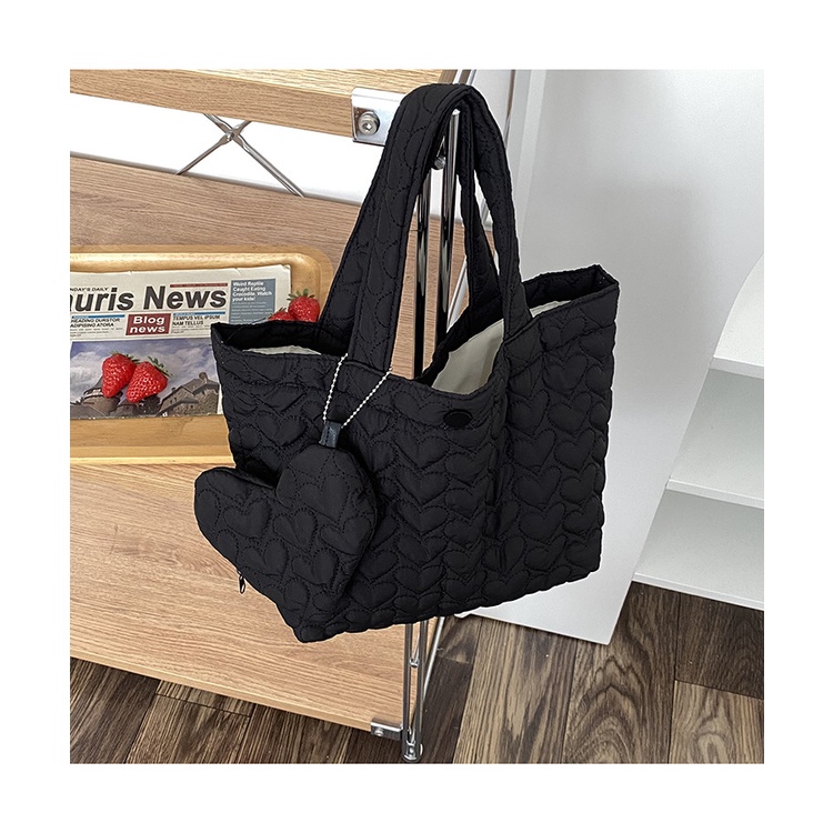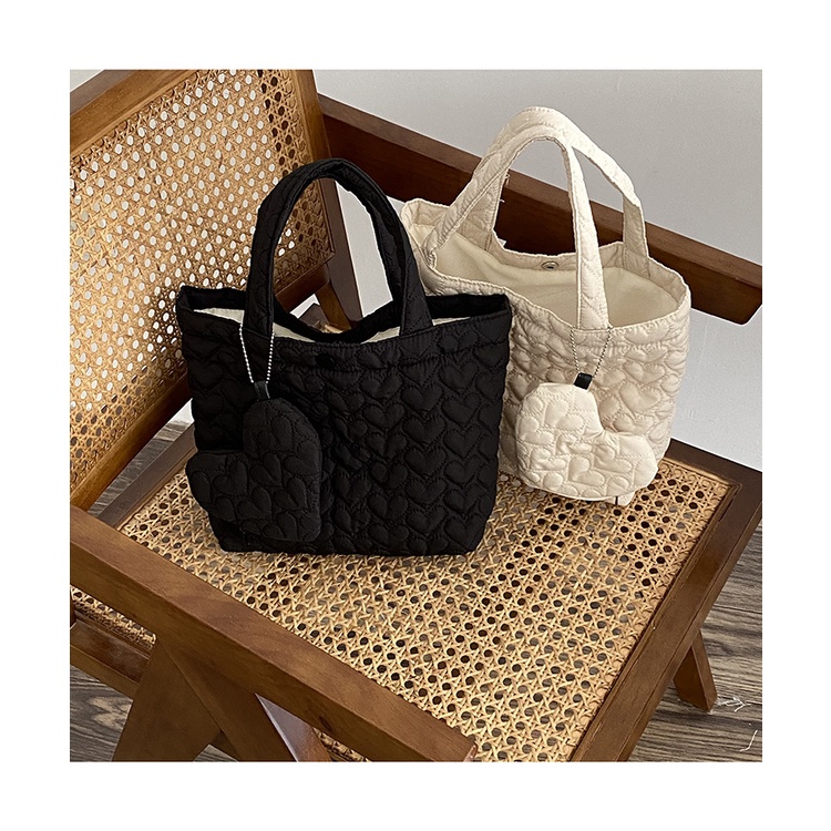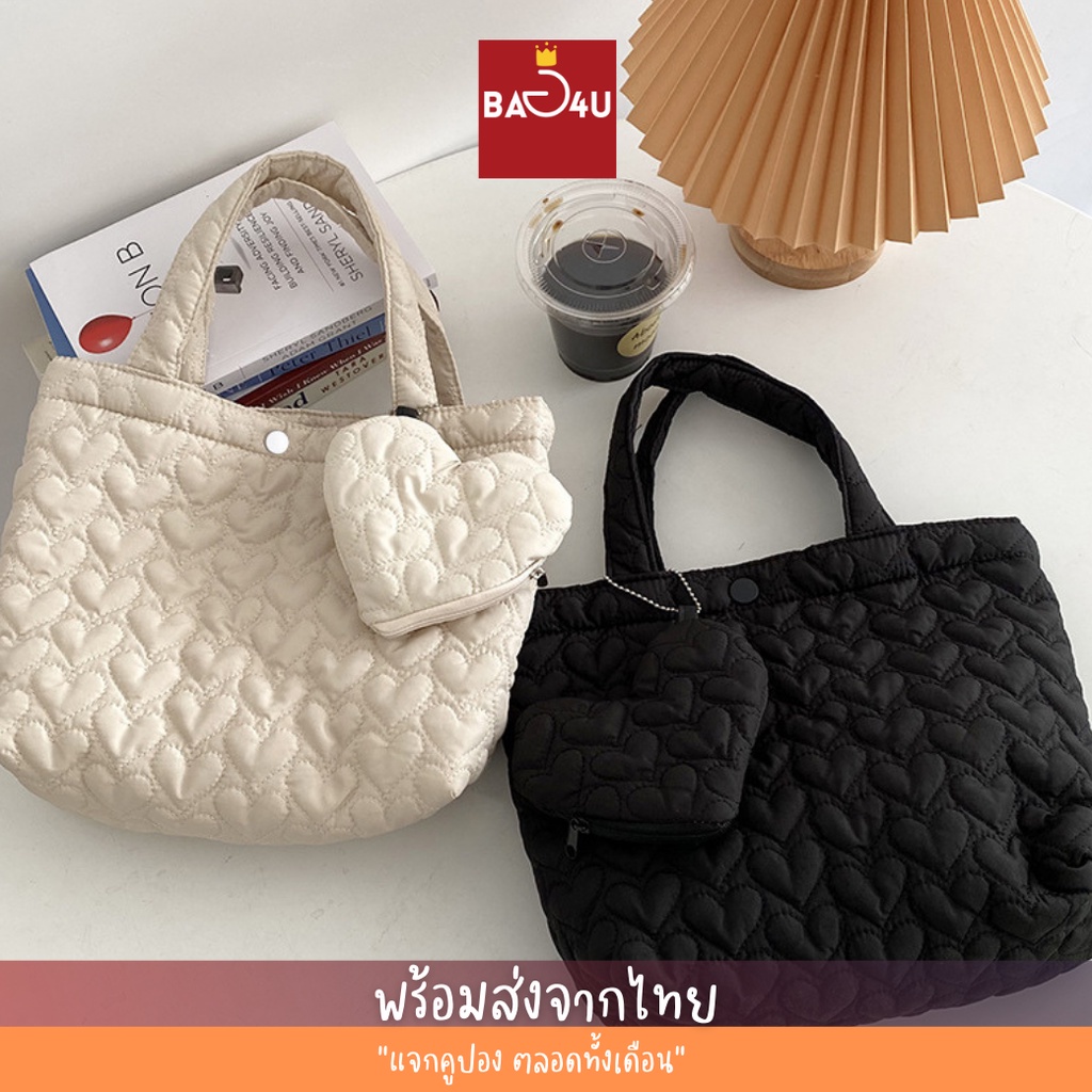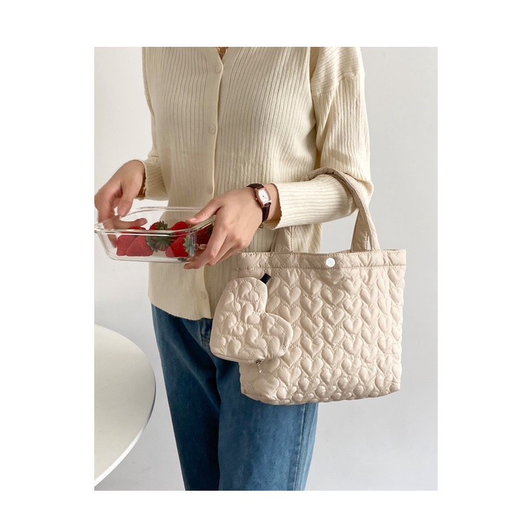 [โค้ด SPC12HPYลด 12%, โค้ด SSP212BAลด 30] กระเป๋าถือผู้หญิง บุลายหัวใจ มีซับใน ผ้าหนานุ่ม แถมฟรีกระเป๋าห้อยรูปหัวใจ
