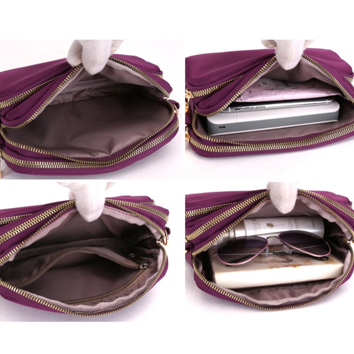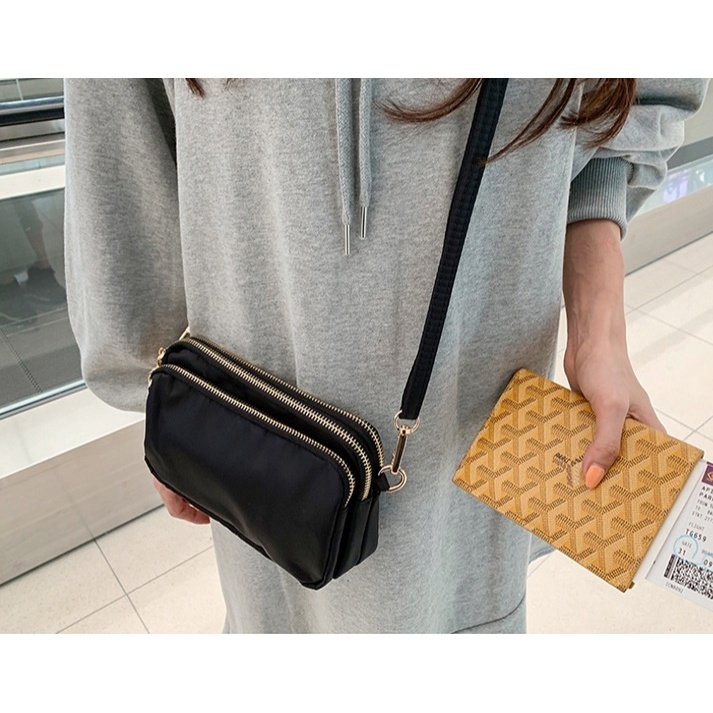 กระเป๋าสะพายข้างผู้หญิง ผ้าไนลอนกันน้ำ ซิปทองเกรดพรีเมี่ยม มีช่องใส่ของเยอะ