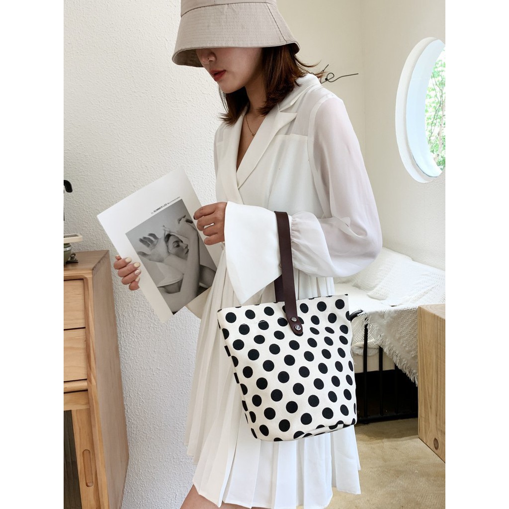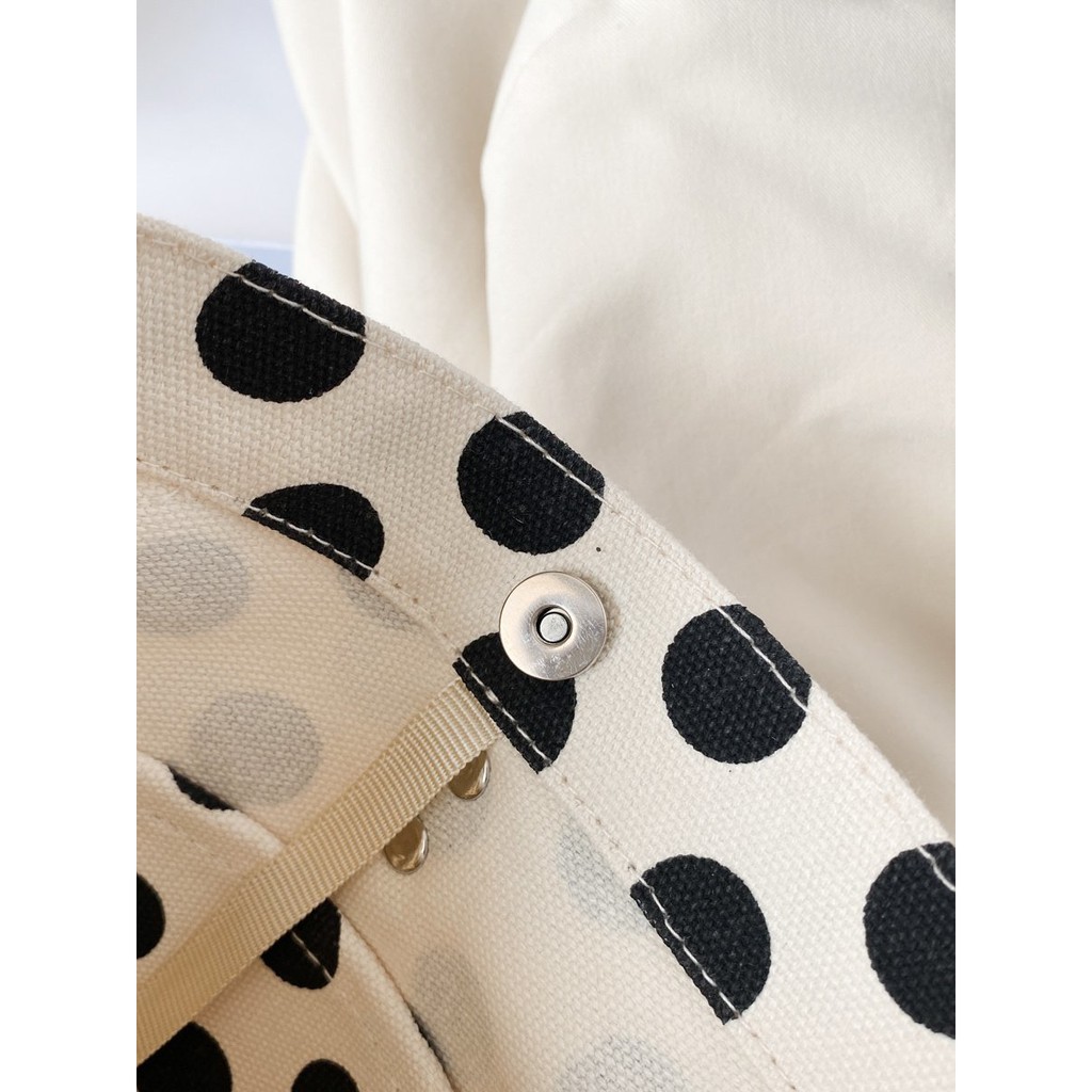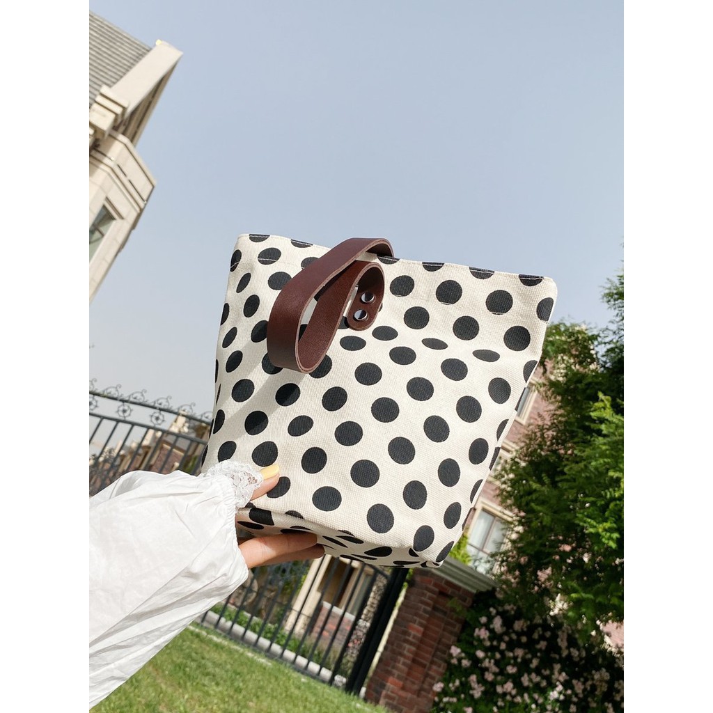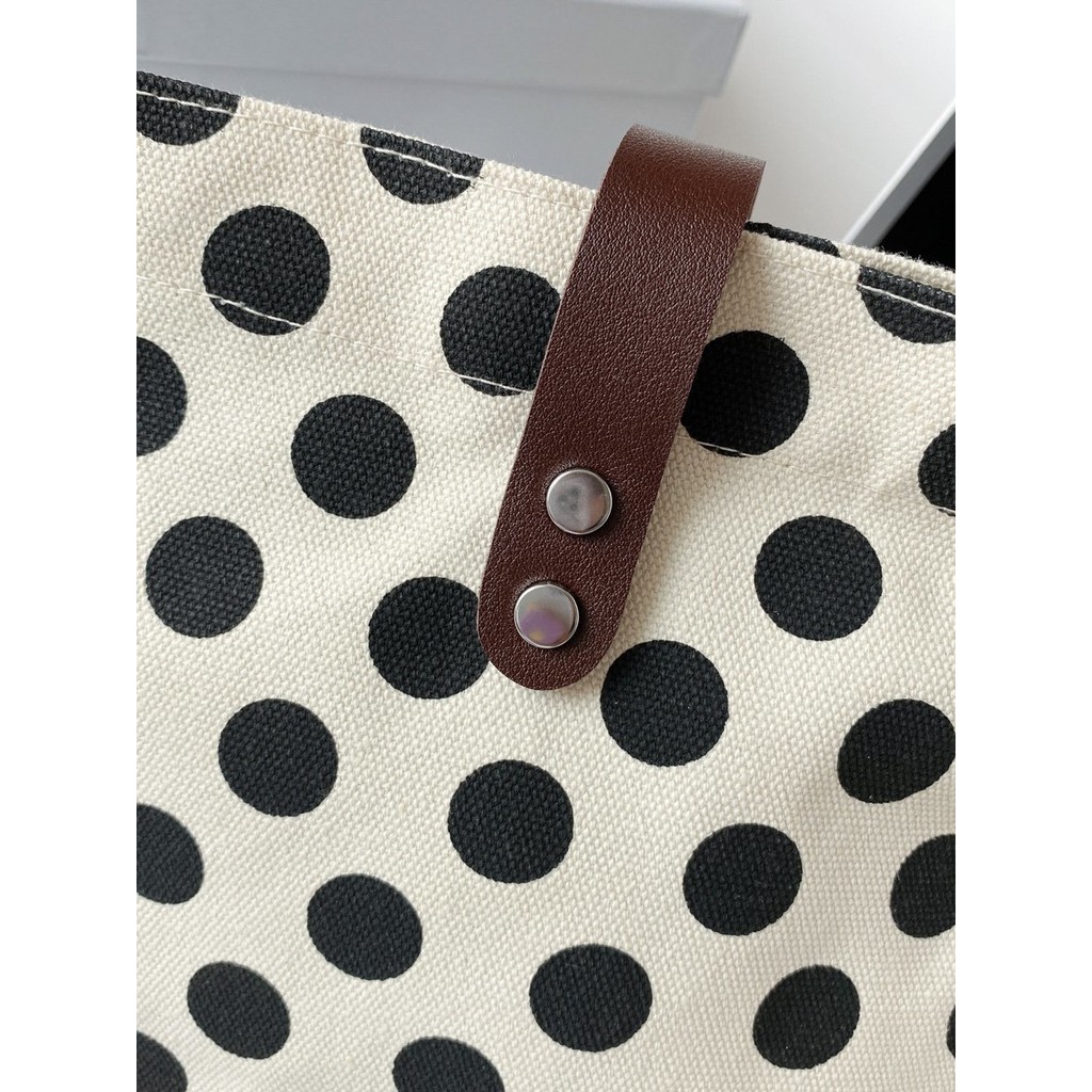 [CODE 22BAGSUP, CODE SPC212BAG] กระเป๋าคล้องแขน ผ้าฝ้ายพิมพ์ลายจุด สายหนัง