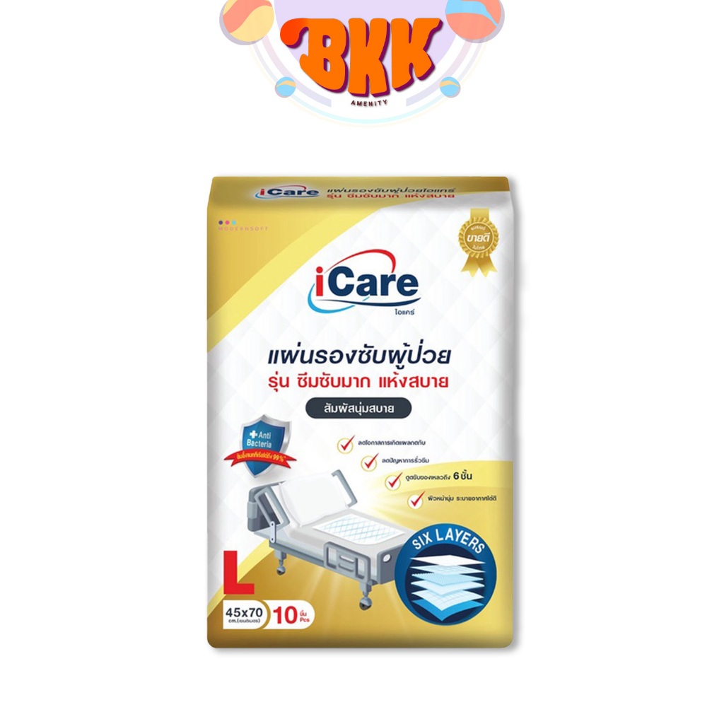 iCare แผ่นรองซับ ไอแคร์ ไซส์ L ขนาด 45 x 70 cm. แพ็คเกจใหม่ (1แพ็ค 10ชิ้น)