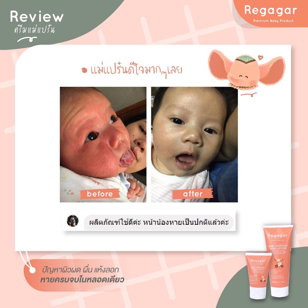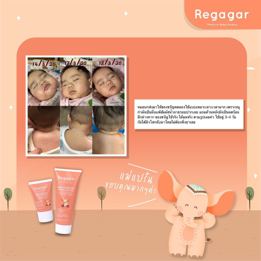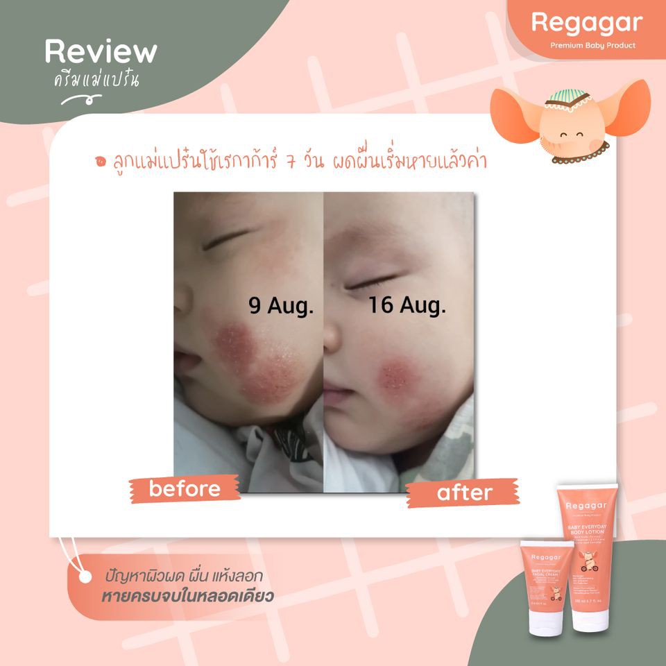 ครีมทาผื่นเด็ก ลดผดผื่น ผดร้อน ผิวแพ้ง่าย ผิวแห้ง ครีมบำรุงผิวหน้าเด็กสูตรแพทย์ Baby Everyday Facial Cream l Regagar