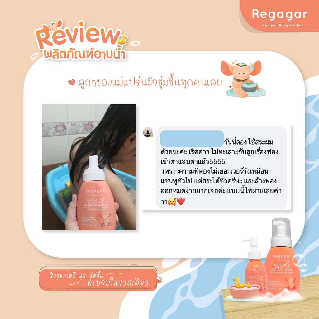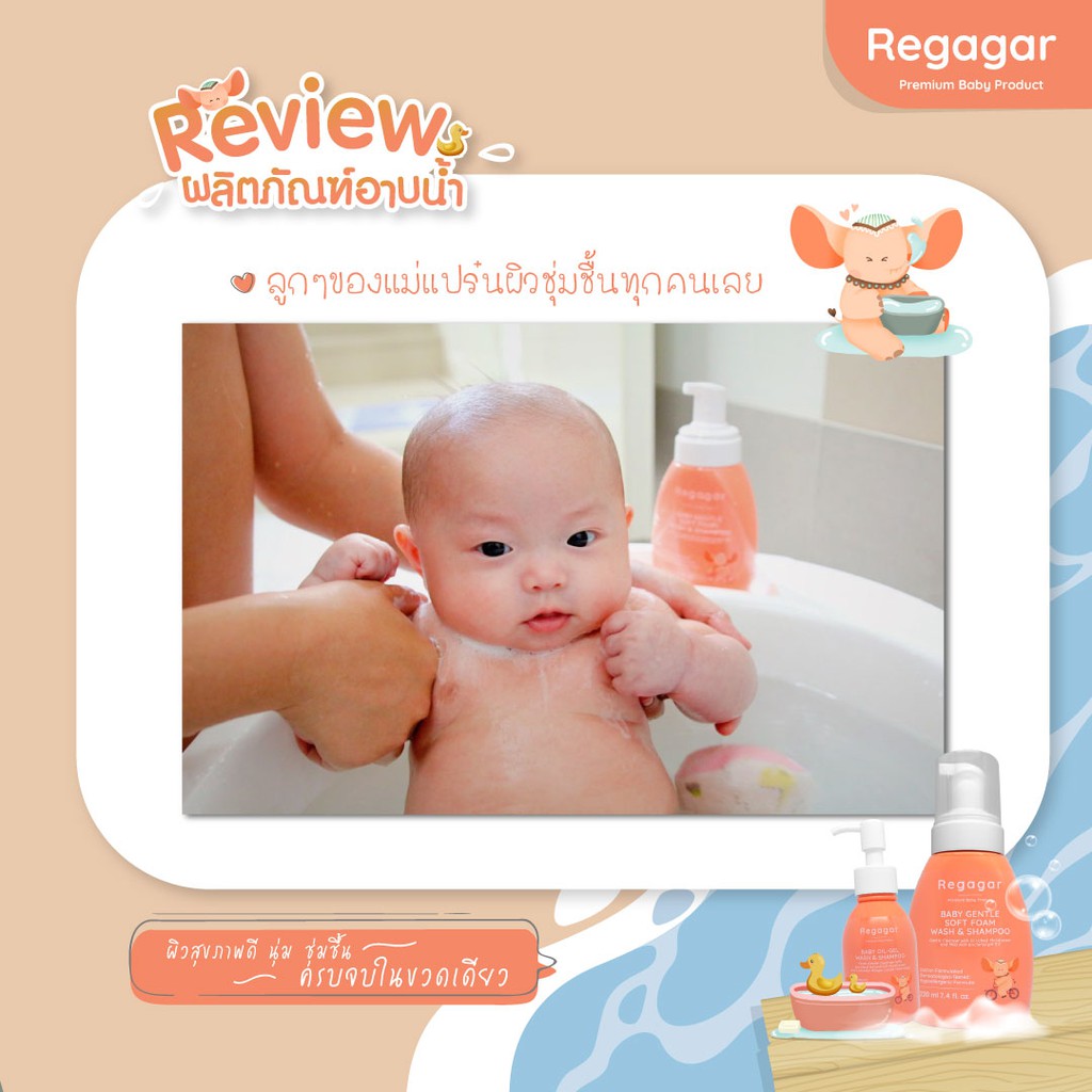 โฟมอาบน้ำเด็ก ผิวแพ้ง่าย ผิวแห้ง ลดแบคทีเรีย ลดอาการผิวหนังอักเสบ สูตรแพทย์ Soft Foam Wash And Shampoo l Regagar